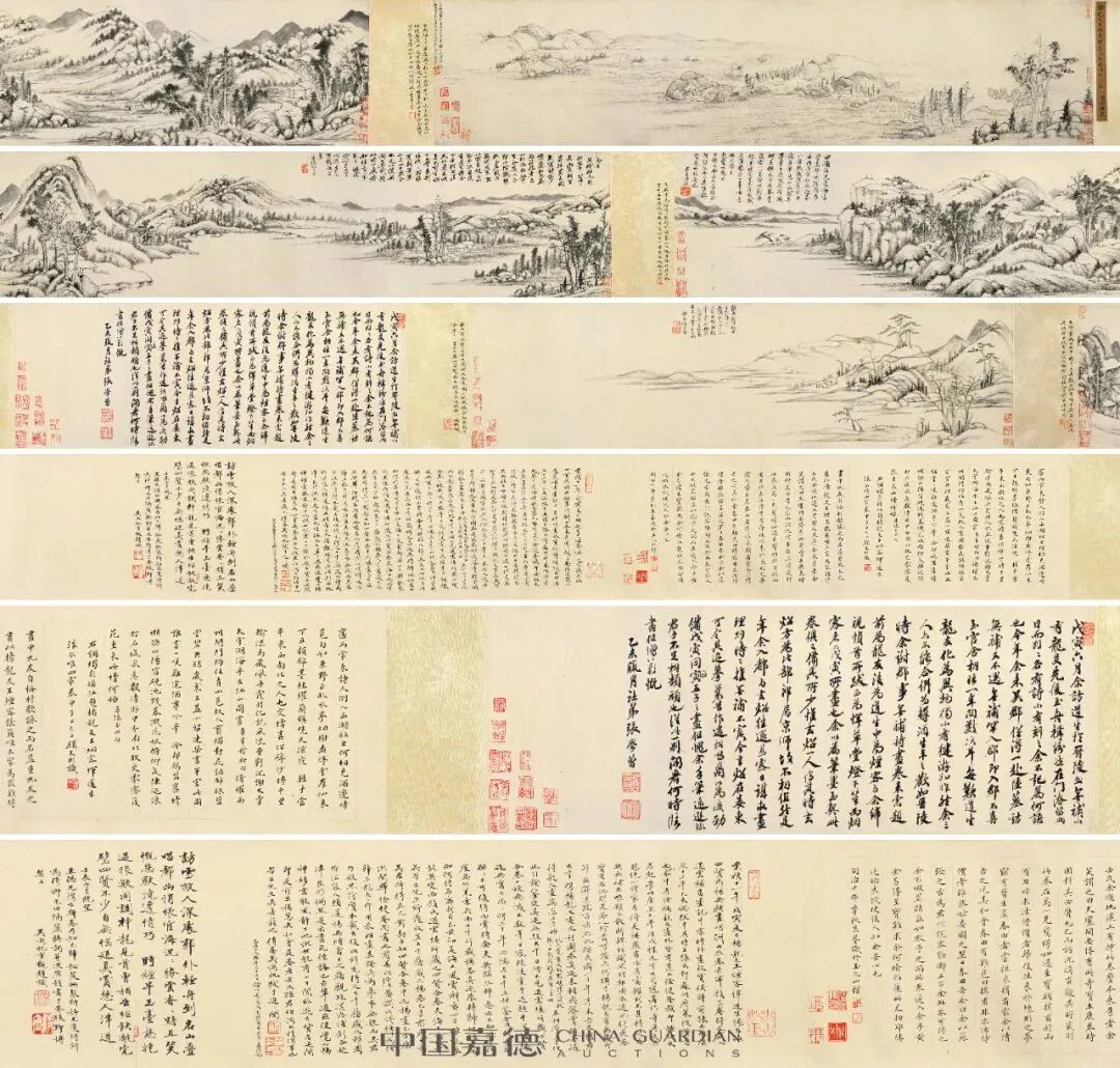 备受关注的杨文骢、王时敏、张学曾、恽向为杨补作《四贤山水合卷》不负众望,以5060万元高价成交。在“疫情”肆虐给经济发展和社会心理造成严重创伤的此时此刻极其难得。激烈的竞争、谨慎的出价,在4300万的价位上,以10万为阶梯加价,几位竞买者的博奕十分胶着。不能错过这铭心绝品,还要精准投放资金,显现了市场最为真实严峻的局面。这也是董其昌行书《龙神感应记》、董诰《栖霞十景图》两件《石渠宝笈》精品遗憾流标的一个重要原因。