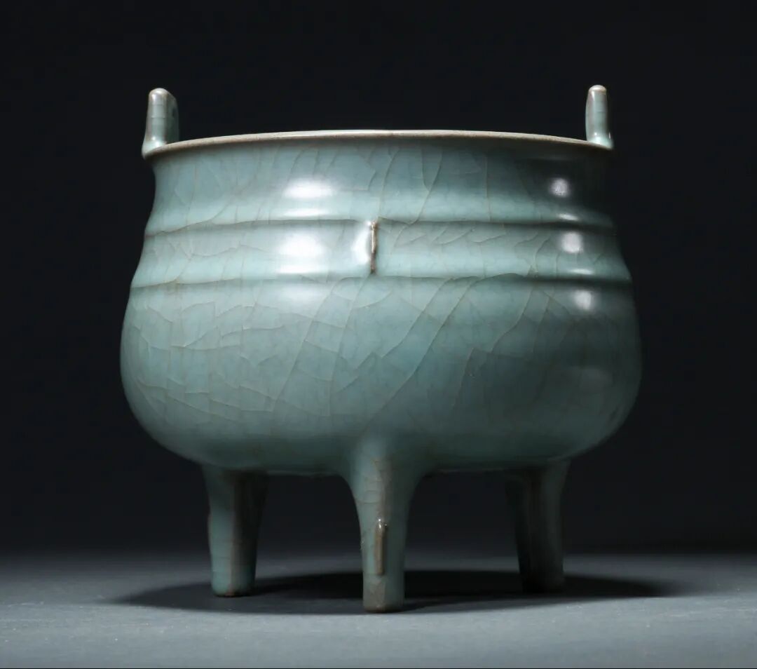 此外,本品极为珍贵,可以说与台北故宫藏原清宫旧藏并由乾隆题字的官釉瓷器几乎一致,而且根据“戊戌”年的题识可知,其与拍品刻字年分仅差三年,可以看出两者似乎均是乾隆帝左右手边之玩物,两者釉质感,器型均十分相近。大英博物馆藏 汝窑长颈瓶底部 其为克拉克伉俪在1978年捐赠大英博物馆,同时于1952、1960东方陶瓷学会展览再从来源来看,可谓来源有序,大家递藏。曾为举世闻名的中国艺术品收藏大家艾弗瑞克拉克夫妇二人收藏,艾弗瑞克拉克夫妇所藏中国古瓷质量精绝,尤其是所藏宋代瓷器久负盛名,均是博物馆级重要收藏,质量与大威德爵士(Sir Percival David)不相上下。此外,本轮内地秋拍中贸圣佳还呈献了一件雍正粉青釉「清雍正 粉青釉螭龙尊」,不同之处是装饰螭龙贴塑装饰。估价:RMB 4,000,000-5,000,000除此之外,青釉部分,北京永乐“清乾隆仿官釉折肩弦纹贯耳壶”值得关注,通体施青灰仿哥釉,釉水凝润,并且此器造型源自商周青铜彛器;中古陶则为各位朋友呈现两件不可多得的“天青釉洗”、“粉青釉三足炉”,均估价待询,足见珍罕之处;金字塔为众藏家带来的“明永乐 龙泉处州官窑暗刻束莲纹大梅瓶”“明早期 龙泉窑青瓷刻花卉凤尾尊”等均为少见精品。估价:RMB 3,000,000-5,000,000
