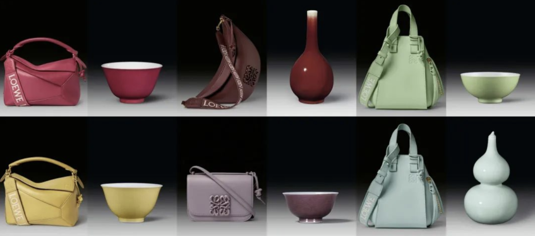 就连西班牙奢侈品牌Loewe,都被这极致美色折服,推出明清时期「单色釉陶瓷」配色系列包包和服装配饰等产品,作为2023年春夏新款,网友大赞“宋代美学即将征服世界”。