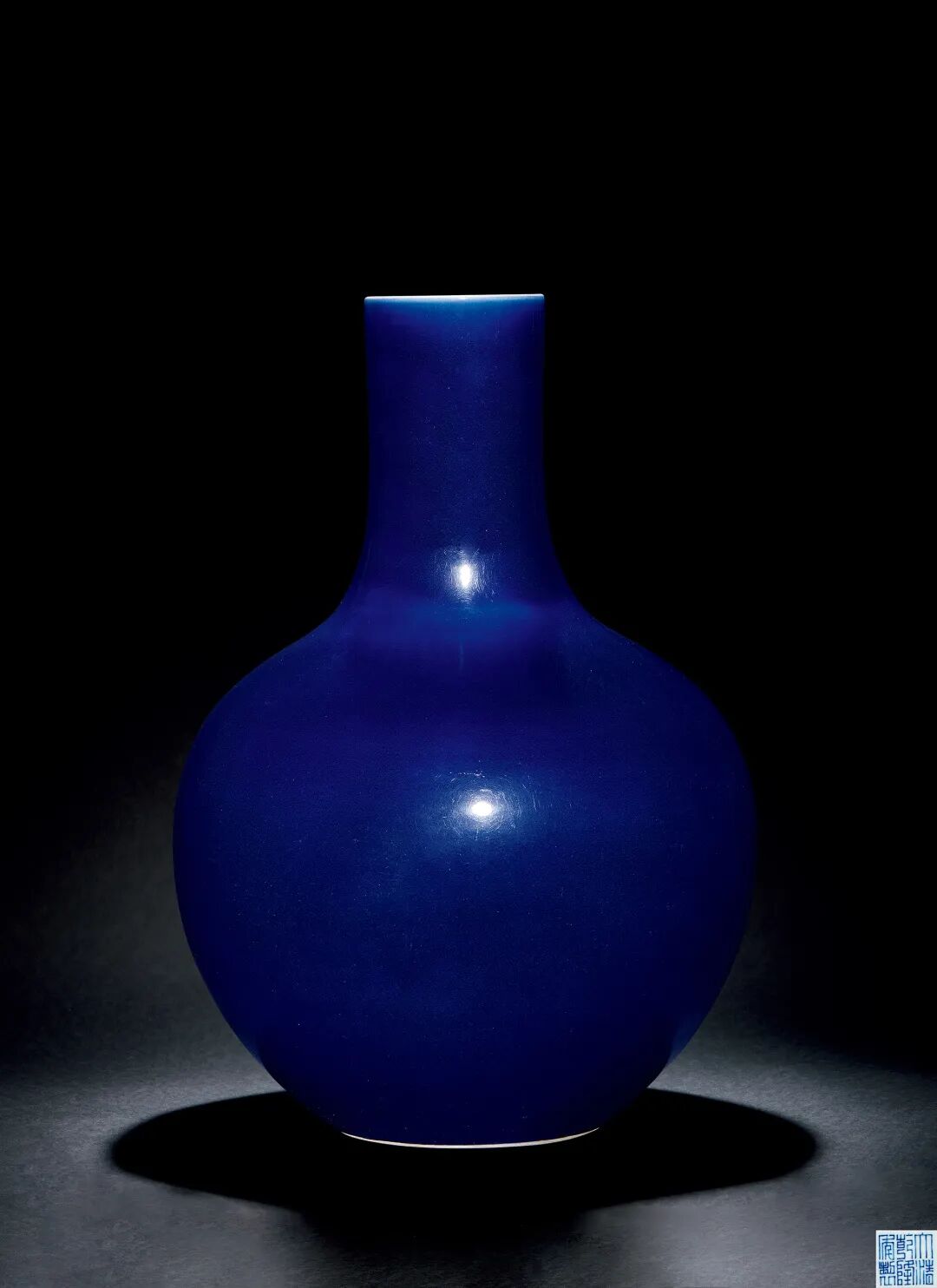 参阅:《故宫博物院藏文物珍品全集—颜色釉》,商务印书馆(香港)有限公司,1999年,页59,图53蓝釉系有霁蓝、天蓝、天青之分,其中霁蓝是一种含百分之二左右的氧化钴的失透釉,在高温还原焰中烧成,色相沉稳肃穆,今年便有一件超珍罕乾隆官窑“霁蓝釉金银彩天球瓶”备受瞩目,溢价25倍、“网红”天球瓶1004万成交,而本轮秋拍蓝釉估价最高的前3件拍品“清乾隆御制霁蓝釉天球尊”、“明宣德 霁蓝釉盘”、“清乾隆霁蓝釉描金缠枝莲八宝纹玉壶春瓶”均为霁蓝釉精品。估价:RMB 3,300,000 - 3,800,000估价:RMB 1,000,000 - 1,200,000而本次特别之处是还有孔雀蓝釉,孔雀蓝釉因呈色翠绿而透亮、极似孔雀羽毛色而得名,是古代陶瓷史中一种相对特殊的釉色。中贸圣佳便推出十五世纪前期低温釉的经典之作“明早期 孔雀蓝釉双铺首罐“,器身施孔雀蓝釉,深沉厚润,古朴厚重,釉色莹润,存世甚少,故而非常珍贵。估价:RMB 2,500,000-3,500,000清乾隆茶叶末釉纸槌瓶