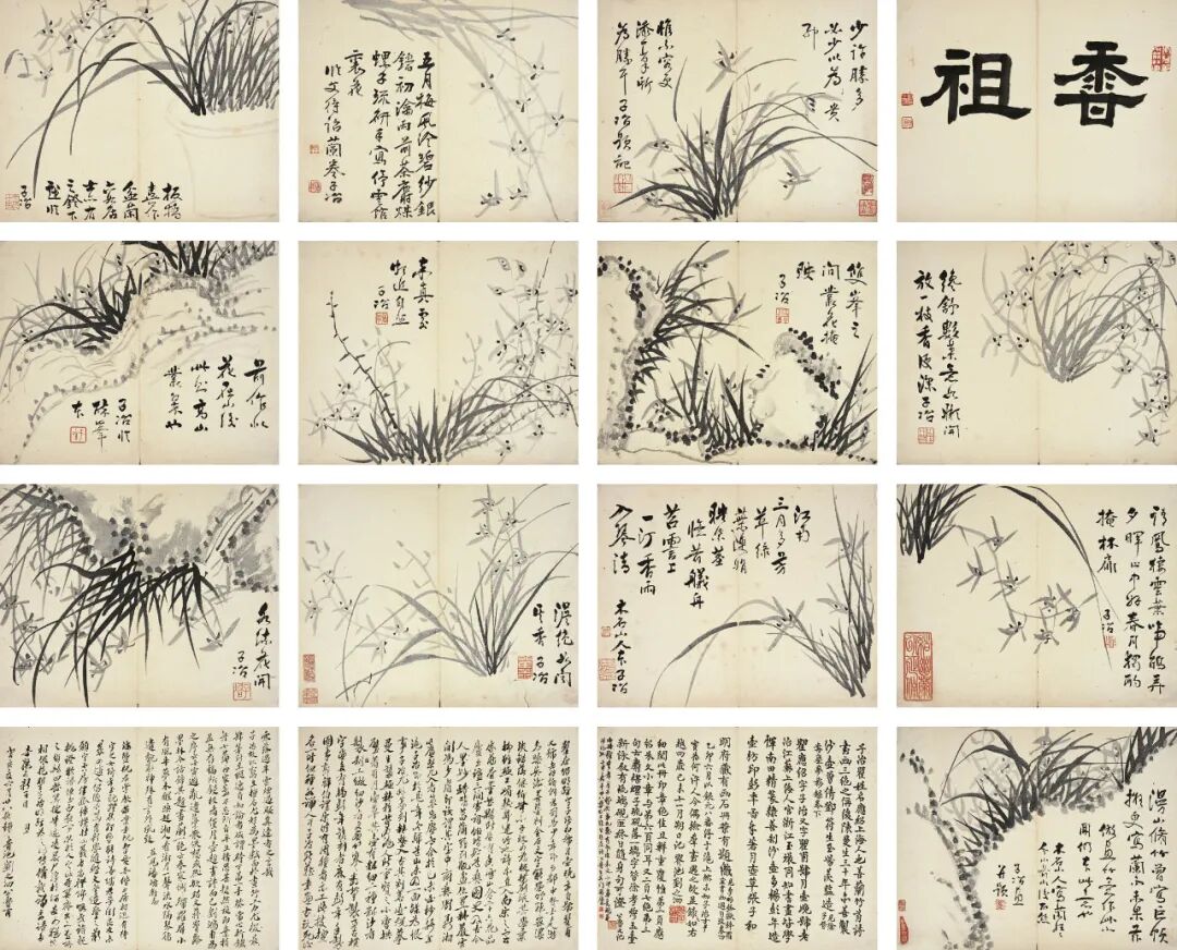 瞿子冶善作题画诗,然而大量诗稿在壬寅之役仓促避难时遗失,留存的诗稿由其长子小春搜集而成一册《月壶题画诗》传世。《月壶题画诗》中有徐渭仁跋:人称瞿子冶“三绝”,枝如作草竿如篆,画法原从书法通,若问壶工三昧诀,黄山谷与米南宫。徐氏强调,子冶写兰以停云为宗(也就是师法文征明所绘“文兰”),山水花草出入白阳南田,均为竹掩。瞿子冶画兰以文征明为主要学习对象,也曾参考摹仿板桥,《月壶题画诗》中“停云馆”多次出镜,“麝煤兰纸红丝砚,手写停云馆里花”,可见他对文征明的绘画技法的学习与传承也是不遗余力的,在学习的基础上,瞿子冶以书法入画,泥上刀笔,有金石味道。虽然并没有他画竹那么声名远播,但他对兰花的刻绘还是下了苦工并有一定艺术追求的。![]()