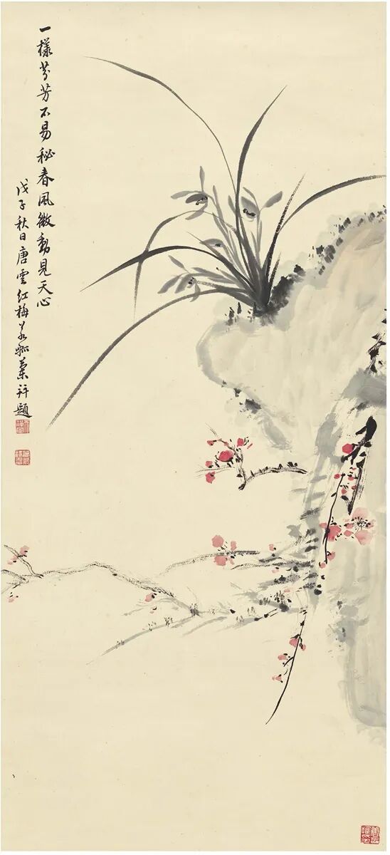 唐云(1910~1993)若瓢(1902~1976) 红梅幽兰图