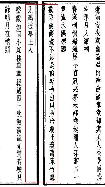 玲珑花叶萧疏竹,想见鸥波亭上人。