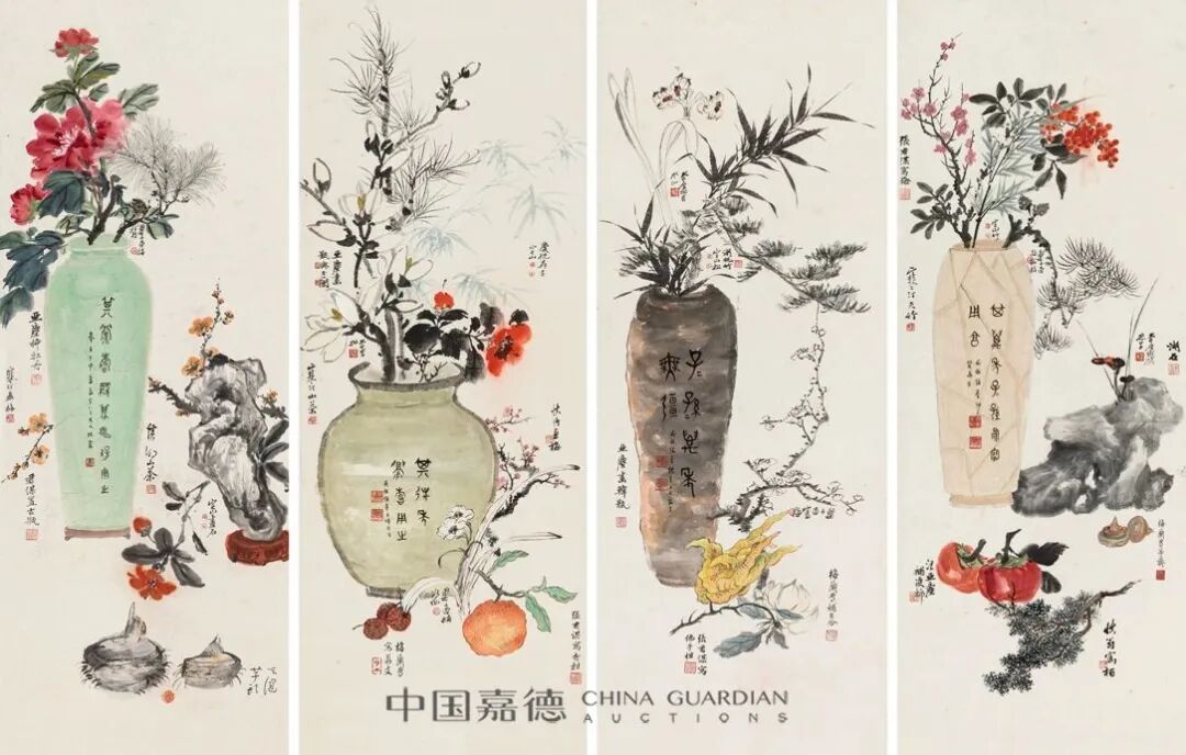 张大千、吴湖帆、梅兰芳等十一家 岁朝清供四屏
