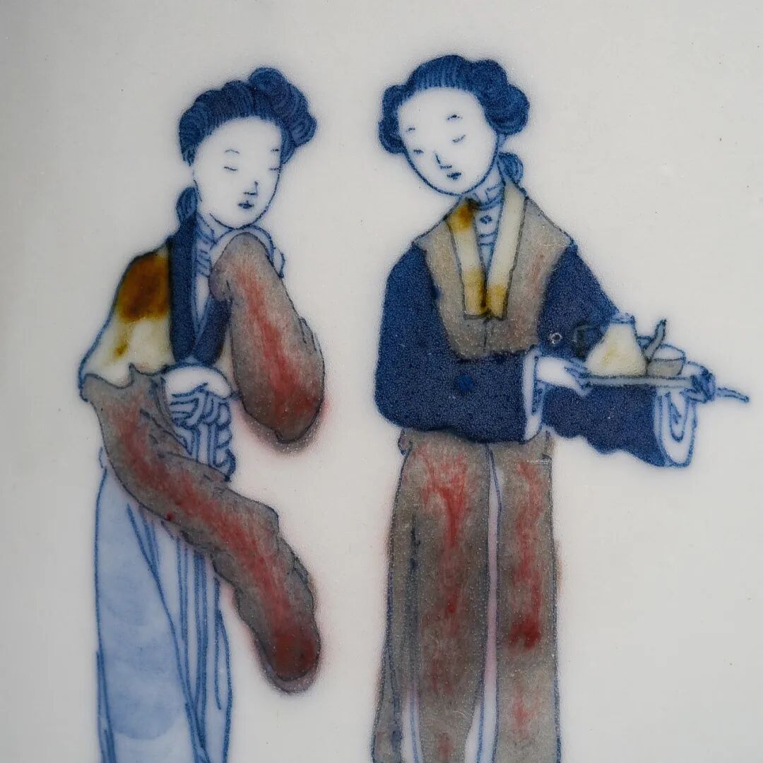 据学者倪亦斌统计,明清瓷画《西厢记》出现的场景比现存的版画册页上所呈现的更多,可以说,瓷画大大拓展了当时戏曲文本的边界。除了西厢记外,明代后期雕印版画作为一种专门艺术,各地书肆所刻印的佛经、戏曲、小说和一些通俗书籍上所附版刻插图,有绝大部分都成为了瓷画的粉本。