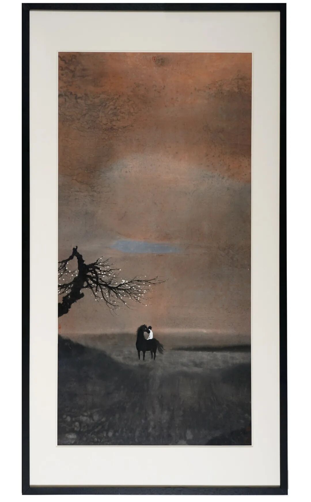包括一组陈抱一、许汉超、钱延康、丁立人、萧勤、靳尚谊、周迈由等现代艺术大师的精彩小品,其中丁立人纸本彩墨作品《戏曲人物》虽然尺幅不大,但是艺术家极具代表性的绘画作品,画面精巧值得玩味;萧勤《红》则用简洁的构图完美的表达的艺术家在水墨画创作中的创新;靳尚谊纸本素描《青年女子头像》作为艺术家油画创作的草稿,展示了艺术家扎实的素描功底,同时极具收藏价值;周迈由创作于1960年代的《在海边》,则以寥寥数笔便描绘了海边隐喻的灰色气质;周春芽《盛开的桃花》是一件纸本马克笔描绘的典型周氏桃花作品;著名诗人北岛的书法作品《时间的玫瑰》,则是书法和诗歌的完美结合;吴冠中100版限量版画《建楼曲》,是一件极具性价比的吴冠中版画作品。