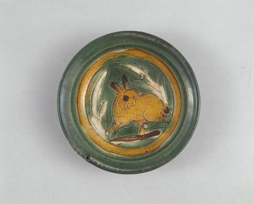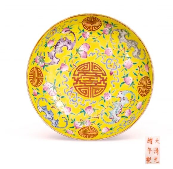 清光绪 黄地粉彩“五福捧寿”纹盘