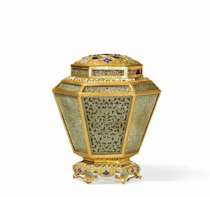 清乾隆 铜鎏金填珐琅嵌玉寿字花插