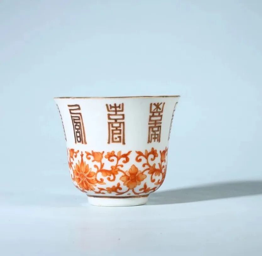 清光绪 矾红描金福寿连绵纹仰钟杯