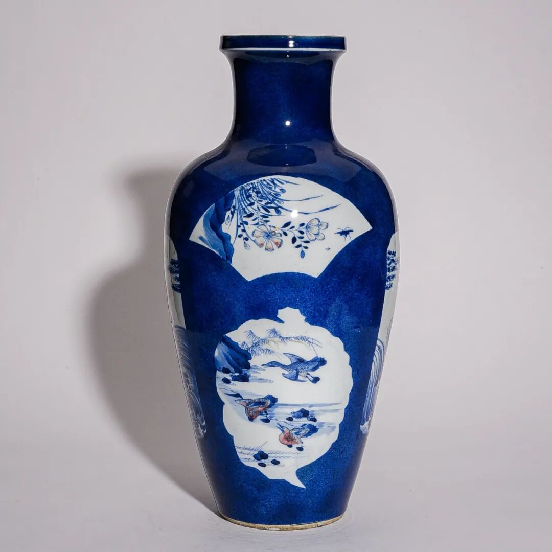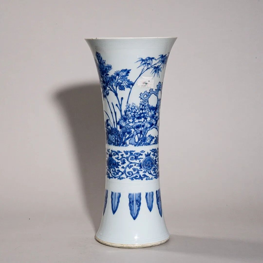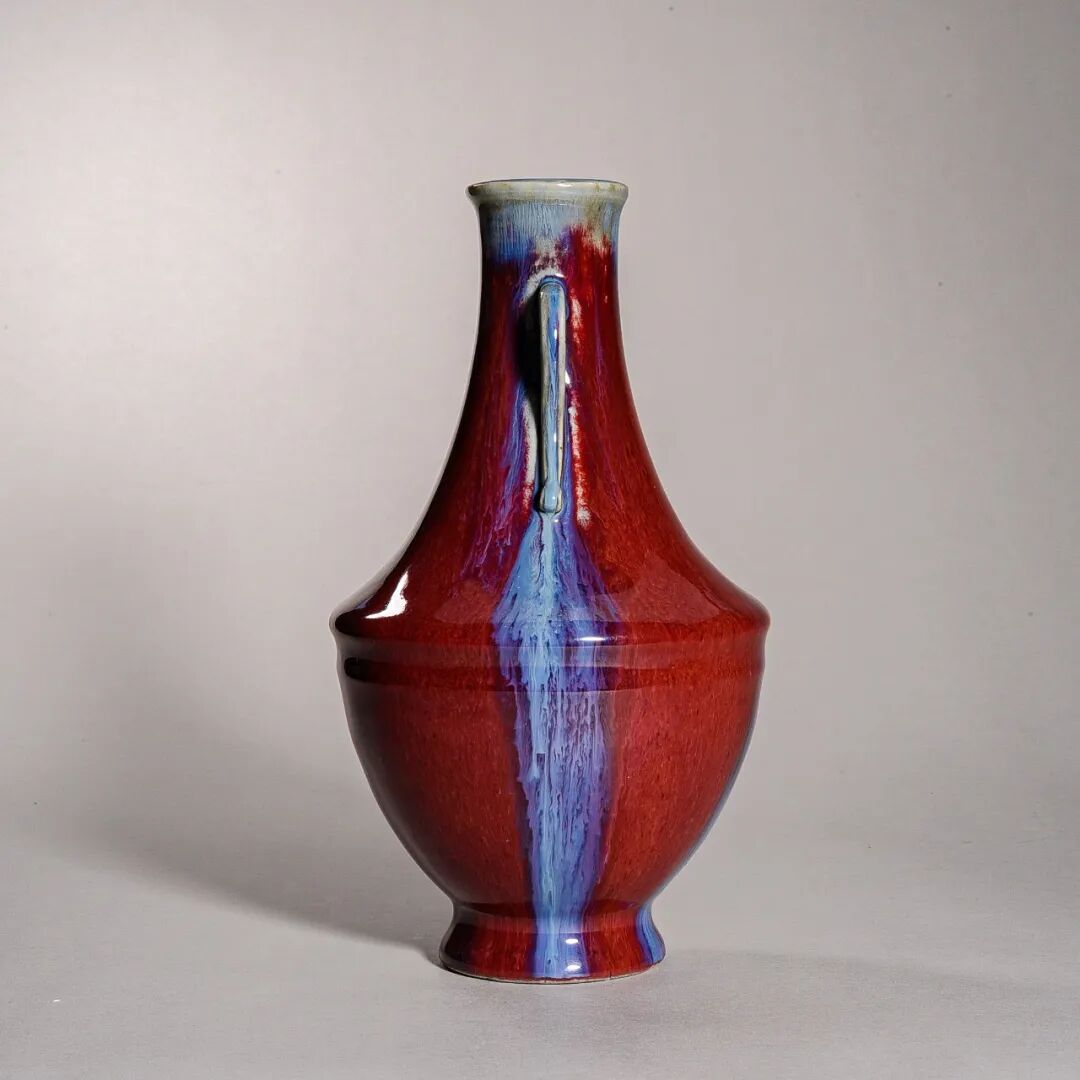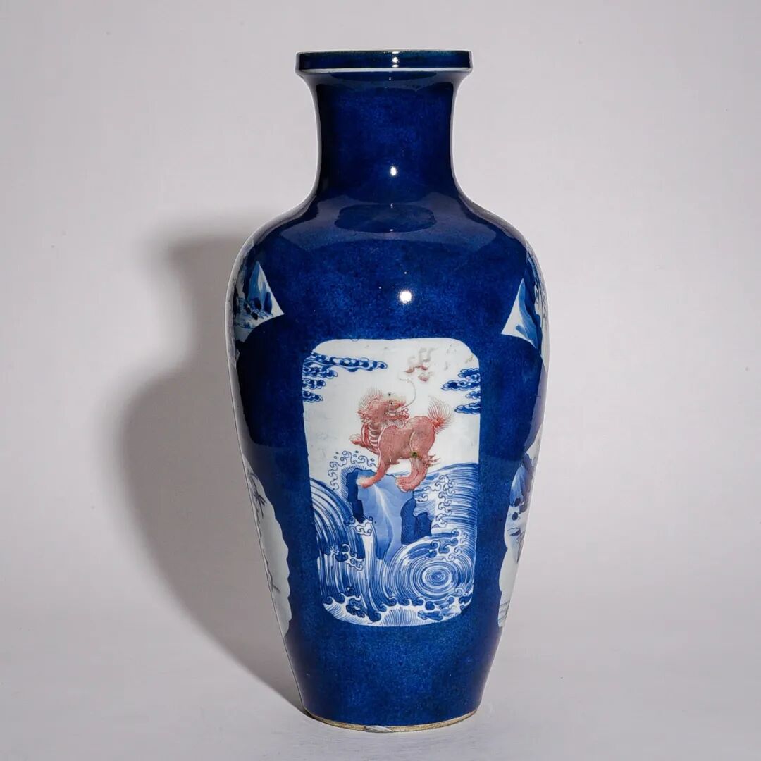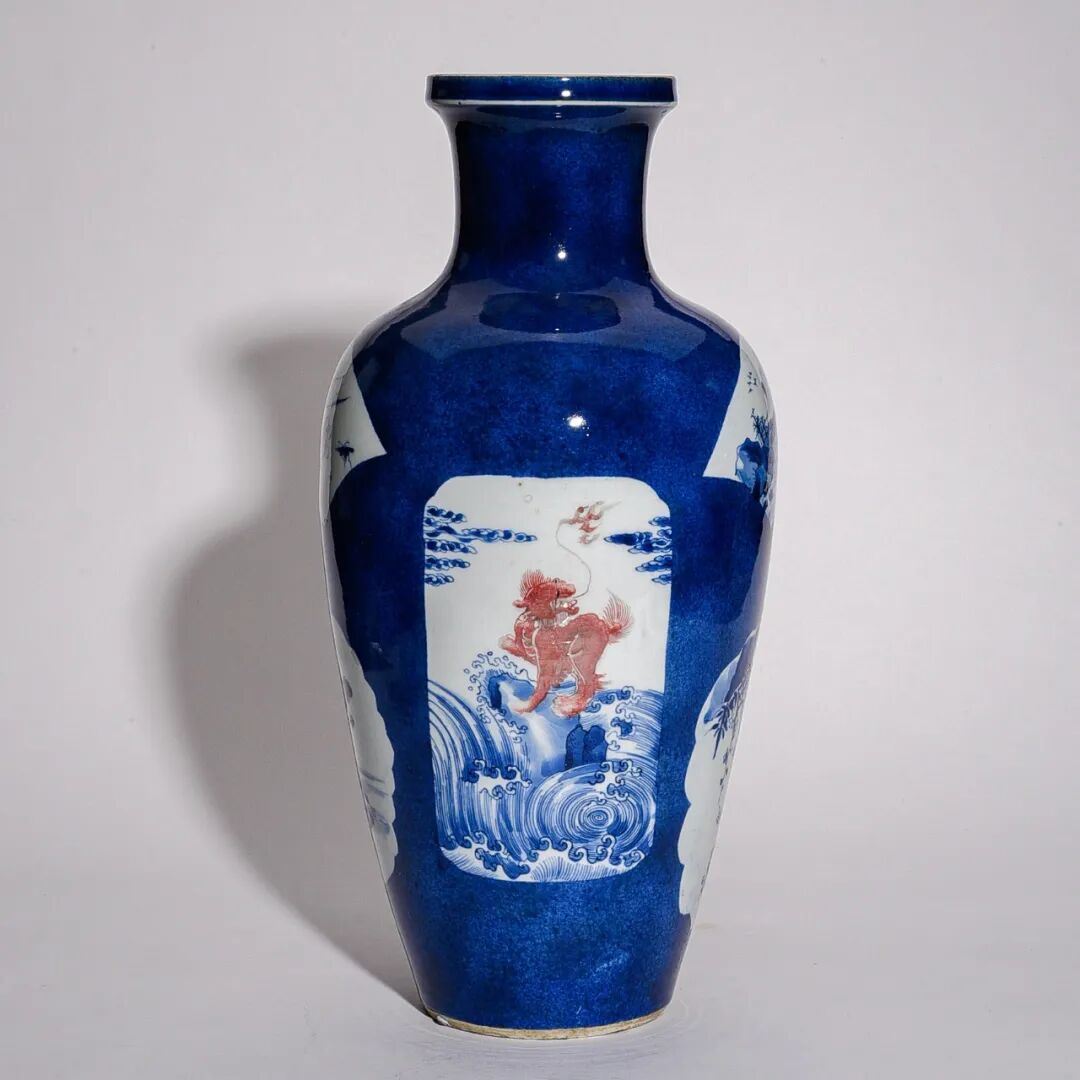 清康熙 青花釉里红瑞兽纹盘口观音瓶