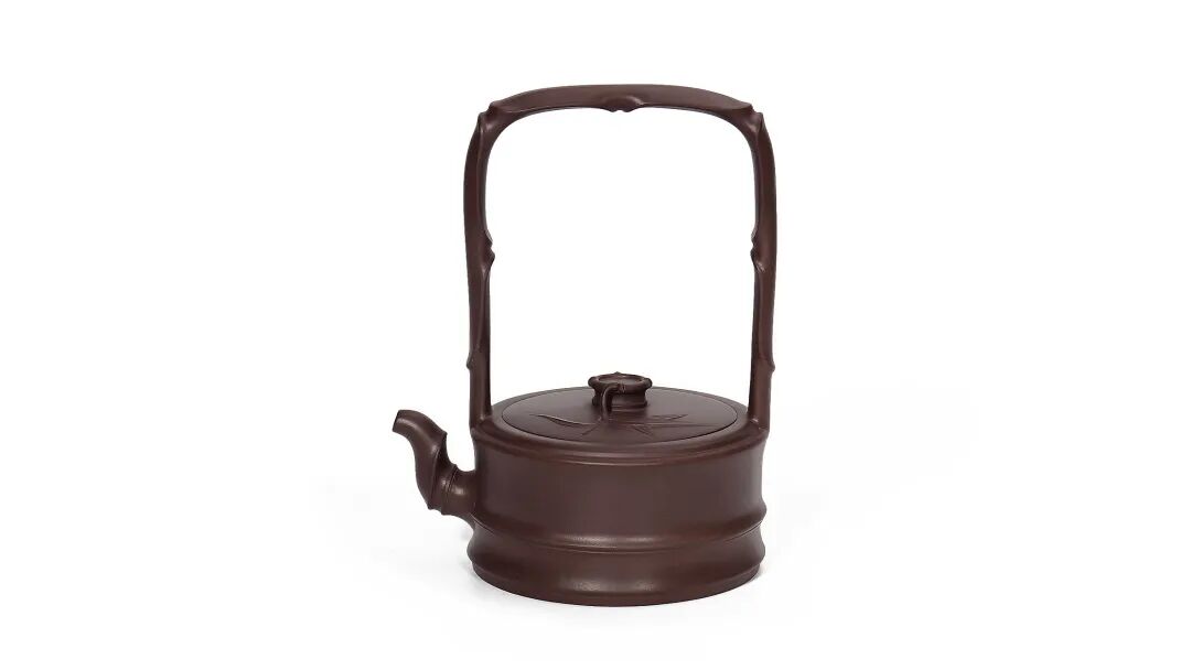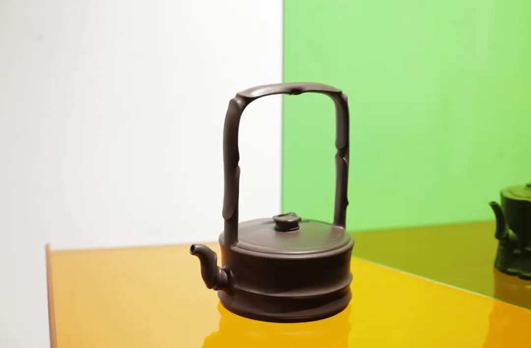 “礼赞新时代——紫砂新青年2023邀请展”展览现场王西泠作品《福禄提梁》,也是以竹为题材。塑竹之型,寓君之性。刚正不阿,节节高升。千山可翠,万古常青,作品有一种视繁实简的简约大气之美。