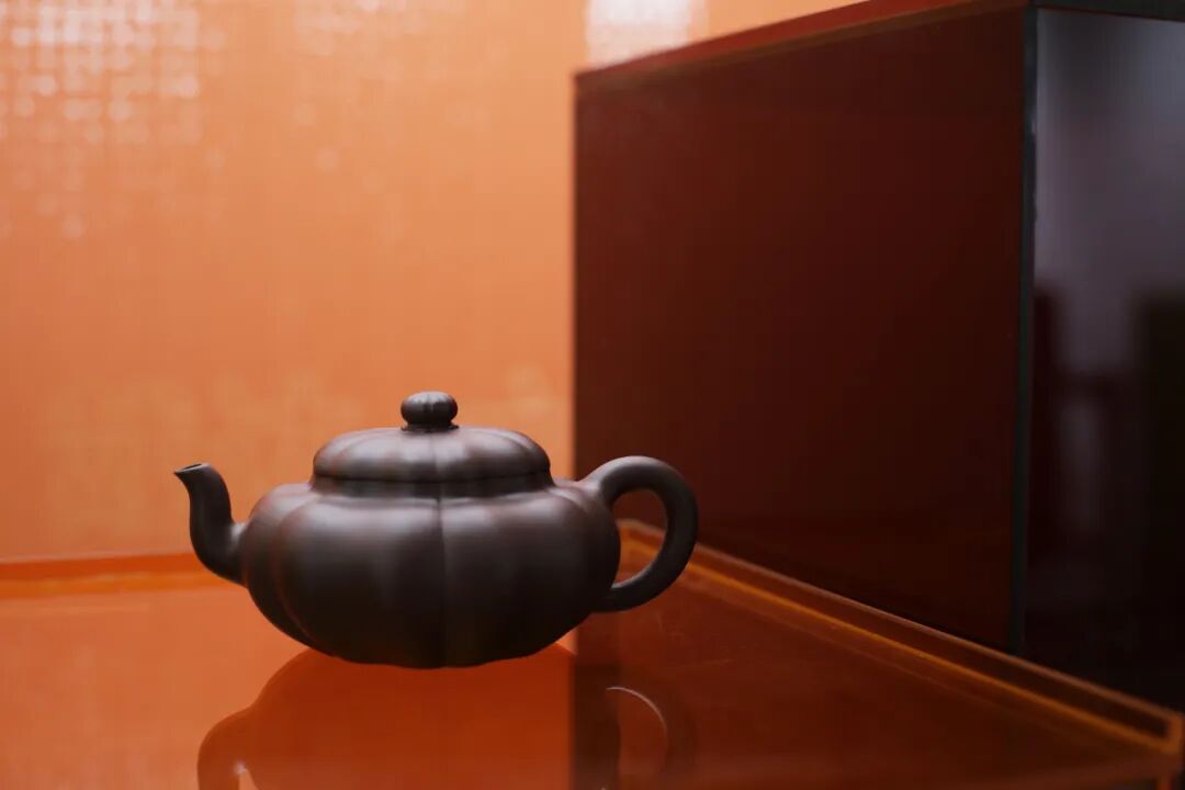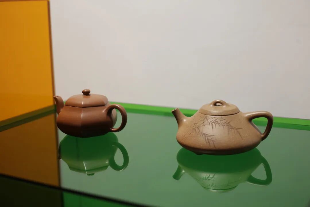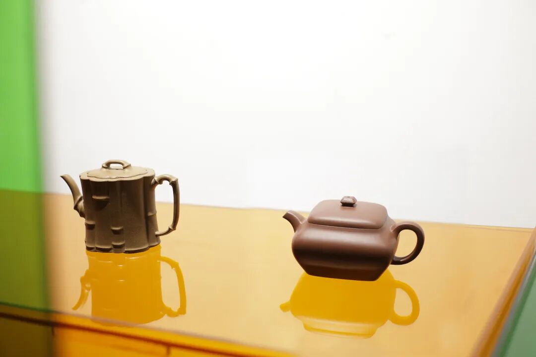“礼赞新时代——紫砂新青年2023邀请展”展览现场卞黎君擅长以竹入壶,作品《唐竹》以十三竹的形式创作而成,竹有粗细有长短,干枯腐破是朽,苍劲穿云是劲,此壶以劲竹为中心,束竹为基础,去掉繁琐,以简单的形式表达竹的秀美。袁鹏作品《回方》灵感来源诗句“蓦然回首。”整体造型成回字形,造型简练典雅,传统而新意,属于浑方器,似圆而方,圆融通达,正应君子之道,是紫砂壶的经典款式之一。刚柔相济,有方器的刚正挺直,也有圆器的顺畅和柔和,饱满圆润的壶身预示人的胸怀。