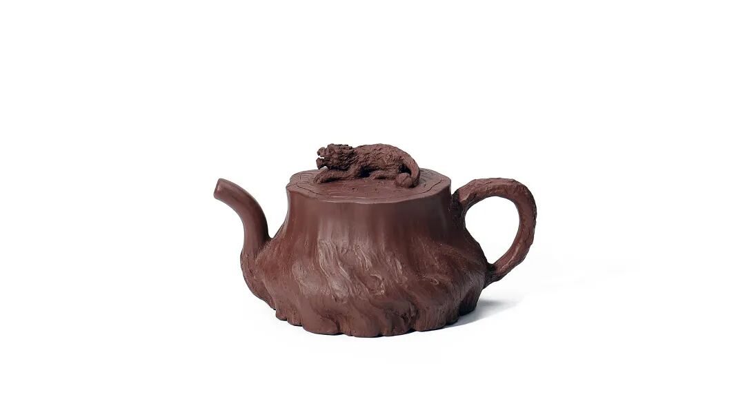 “礼赞新时代——紫砂新青年2023邀请展”展览现场“倚窗听雨落,坐看云起时。”许晶作品《倚窗听雨》壶身为如意纹混方造型,气韵挺拔浑厚有力,壶钮设计成中式冰裂纹花窗造型,空灵古雅。静坐在茶香四溢的案台前,透过这镂空的花窗,仿佛看到了窗外淅淅沥沥的烟雨,细密的雨,如丝如线,尘世间的一切,都笼罩在缥缈的水汽中。何流作品《瑞兽》从神话中而来:貔貅是五大瑞兽之一,具有美好的寓意,相传貔貅是龙的第九子,能腾云驾雾,号令雷霆,降雨开晴。相传还有辟邪挡煞,镇宅之威力。可招八方财,可聚宝,只进不出,神通特异,其地位尊贵。作品《瑞兽》采用肌理手法表现远古丛林里的树木,盖面和壶底用线条勾勒出层峦叠嶂的云海感,与貔貅相结合,使得《瑞兽》作品鲜明立体。