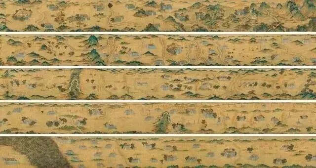 《丝路山水地图》又名《蒙古山水地图》, 绘于绢本之上,幅宽0.59米、全长30.12米,是一幅绘制于明代中后期的,应为内府使用的青绿山水手卷。这幅山水地图,受明代中期吴门画派影响,以表现青绿山水、高大山川为主。林梅村等专家推断,这幅地图的绘制者,应当是明代中期的吴门画师谢时臣。这幅地图负载了大量原始的地理信息,它的出现以实物证明了在西方地图传入中国之前,中国对世界地理特别是对于丝绸之路沿线已有清晰的认识。