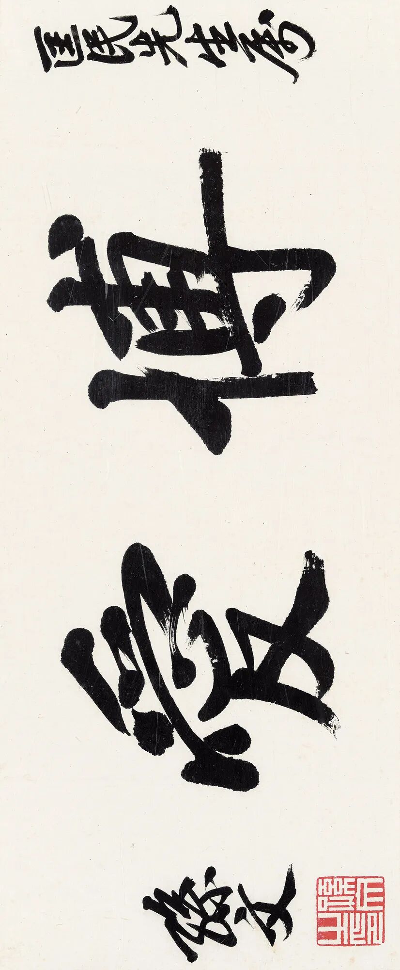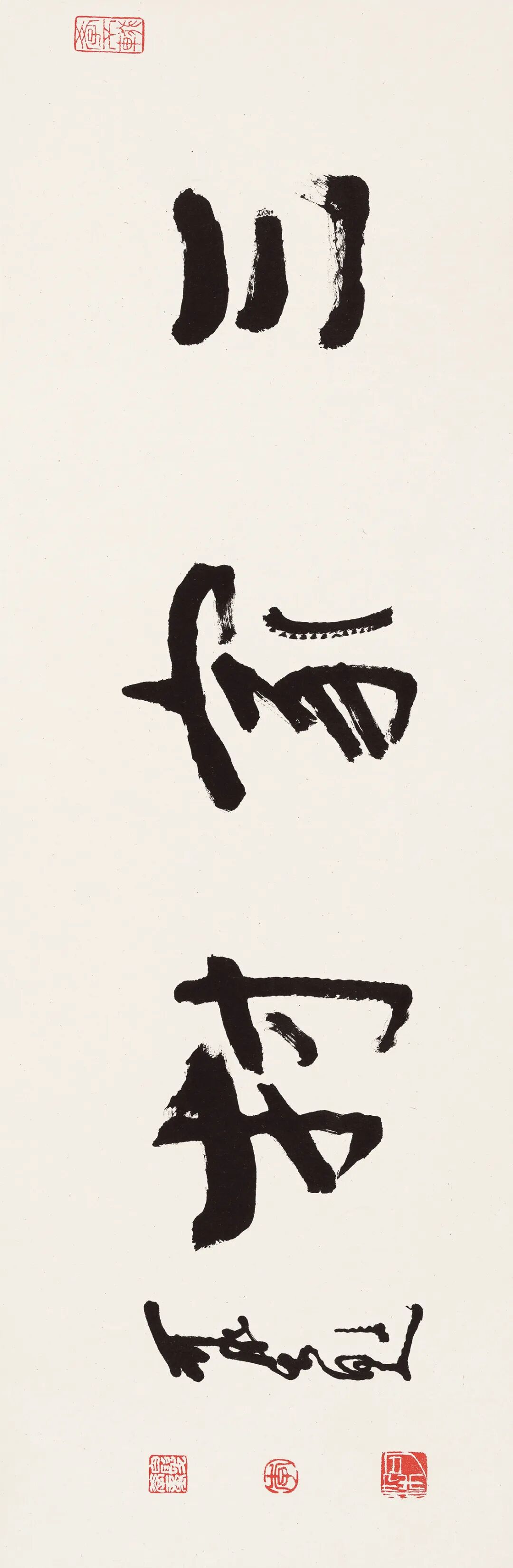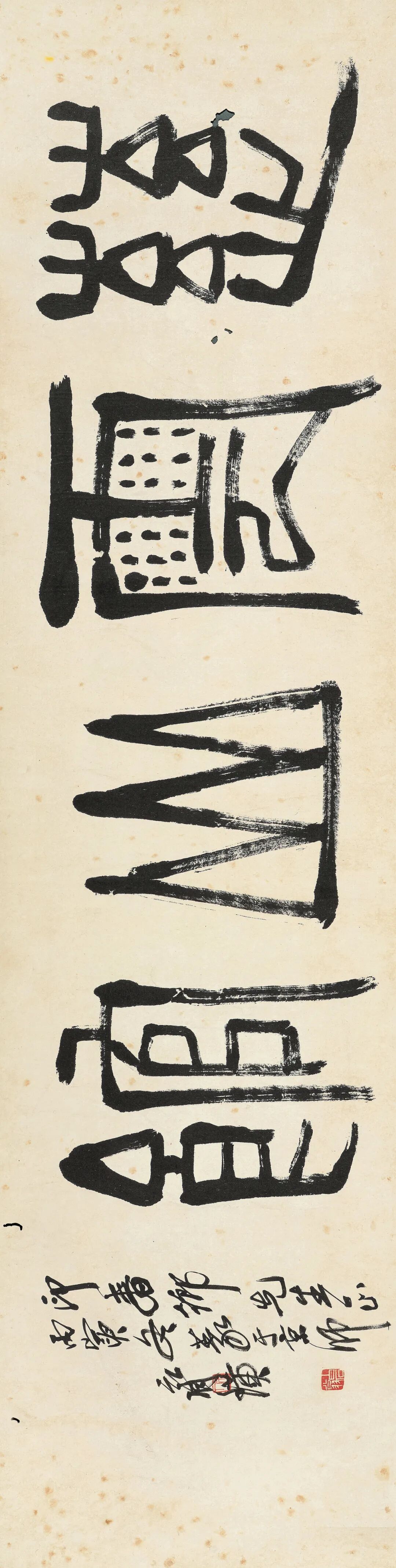 与此同时,尚有天才纵逸、风格独特之一众书家,他们纵横捭阖、交错连横,尽管尚不足开一代宗风,然亦足闪耀二十世纪中国书坛。诸家中,身份不一、风格大异,或以政要而事此余事,如孙逸仙;或以硕儒而发此光辉,如马一浮;或以画家而涉此苑囿,如吴湖帆、李可染。《行书“博爱”》系孙文书赠时任大元帅府法制秘书陆匡文之作,陆氏早年曾倾家捐赠20万大洋支持林云陔发起高州起义,义举罕见,可副“博爱”之褒。《篆临〈理公岩记〉六屏》则是蠲叟少见的大体量篆书作品,煌煌六屏之巨,凝练遒劲,朴茂自然。