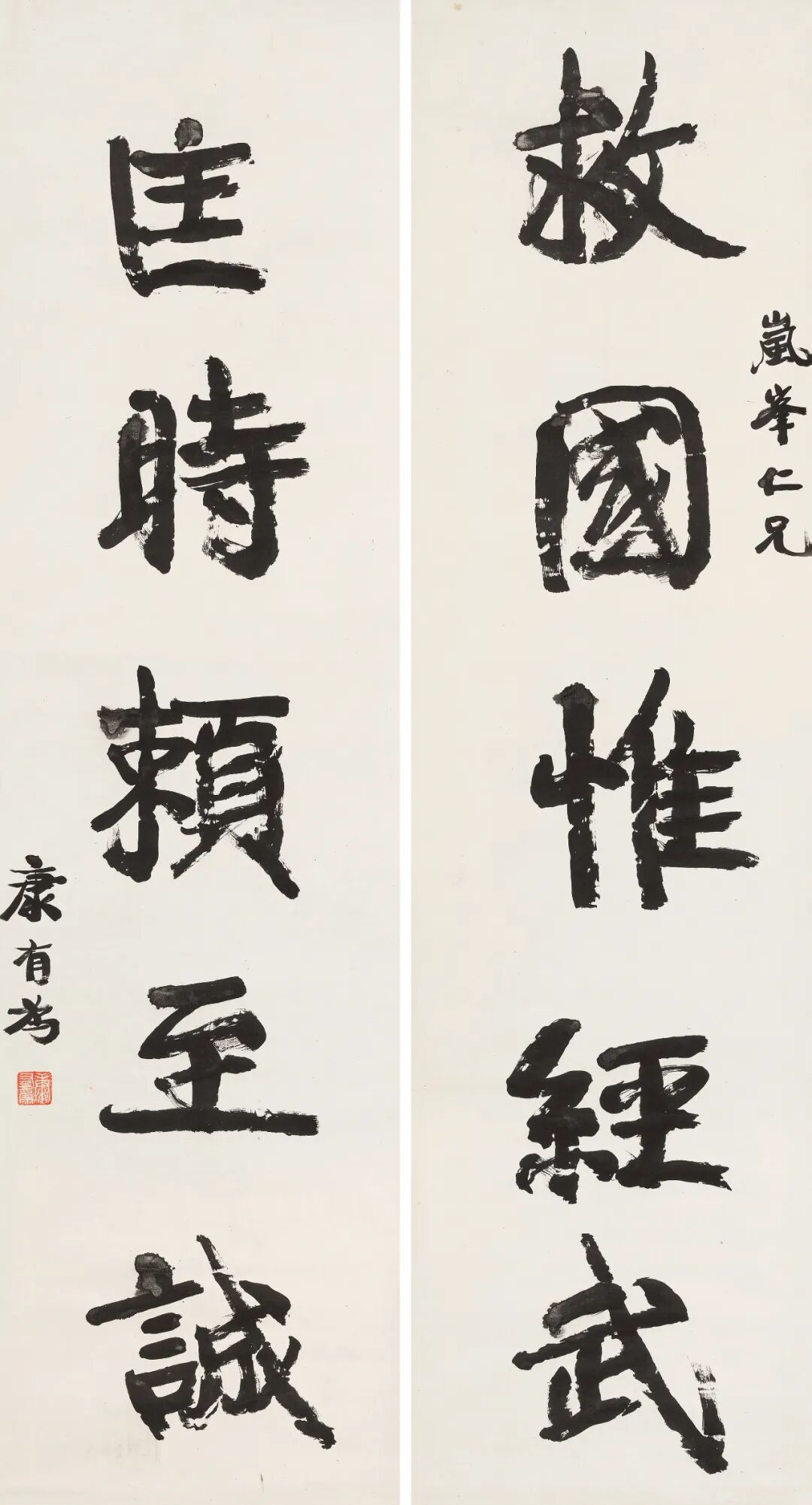【题识】救国惟经武;匡时赖至诚。岚峰仁兄,康有为。
