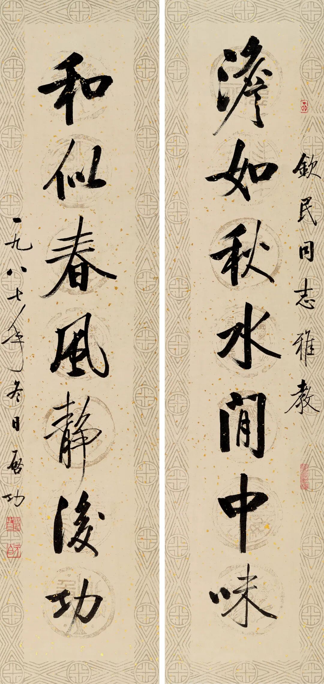 【题识】淡如秋水闲中味,和似春风静后功。钦民同志雅教,一九八七年冬日启功。
