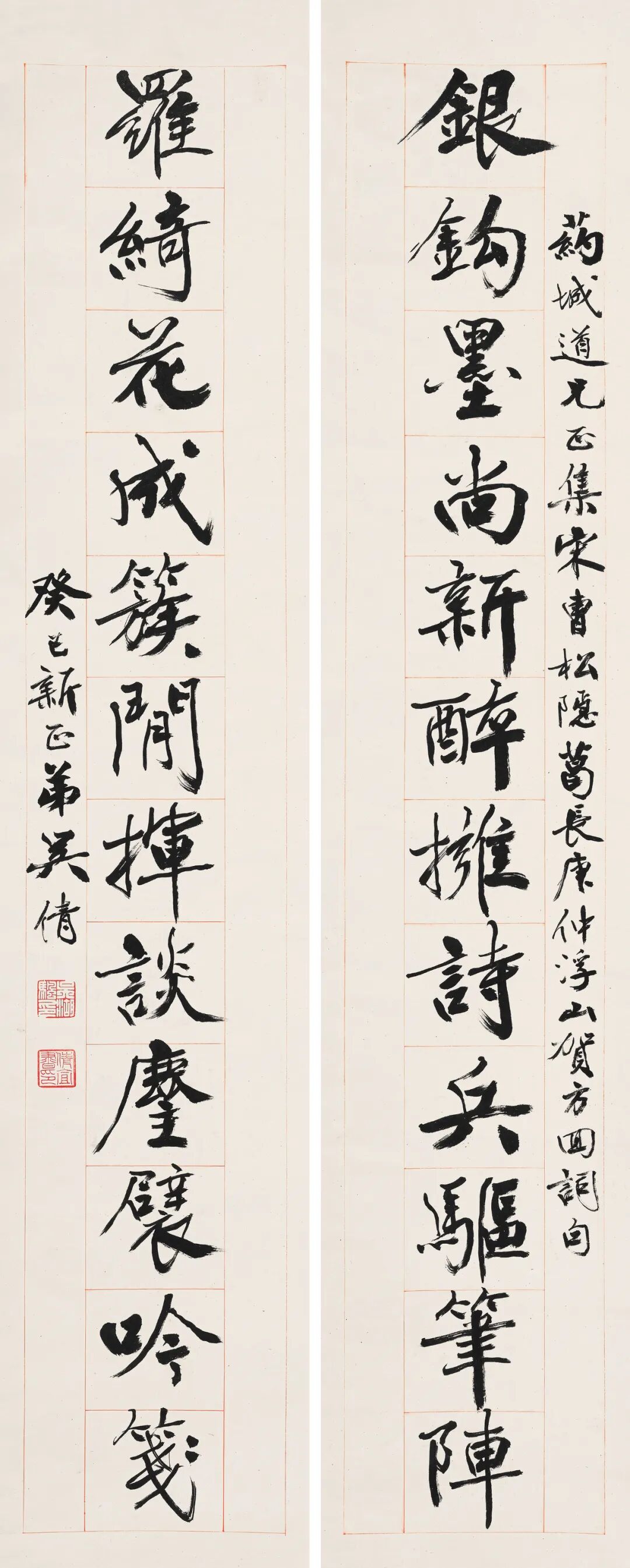 【题识】金鈎墨尚新醉拥诗兵驱笔陈,罗绮花成簇閒挥谈尘襞吟笺。药城道兄正集宋曹松隐、葛长庚、仲浮山、贺方回词句,癸巳新正弟吴倩。