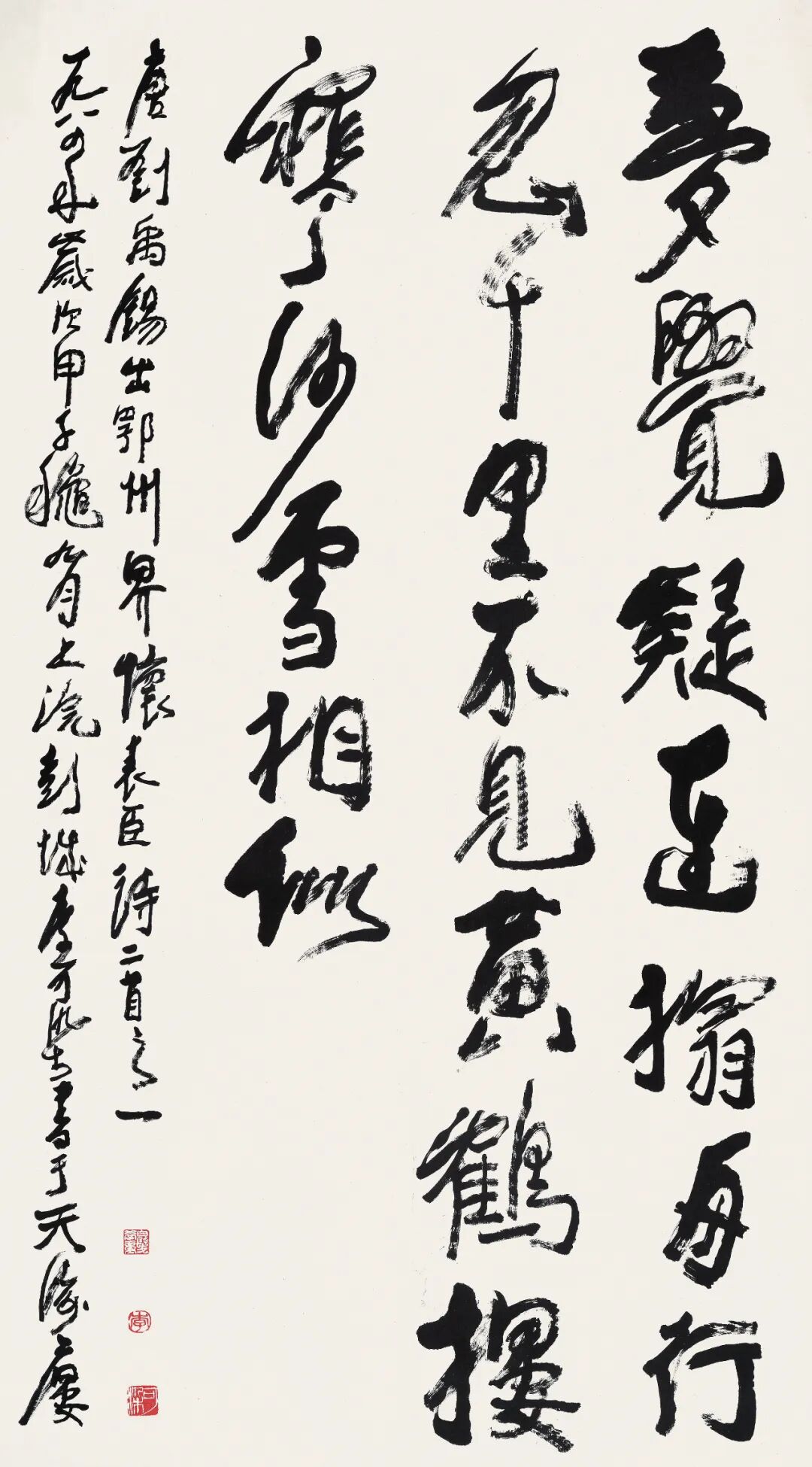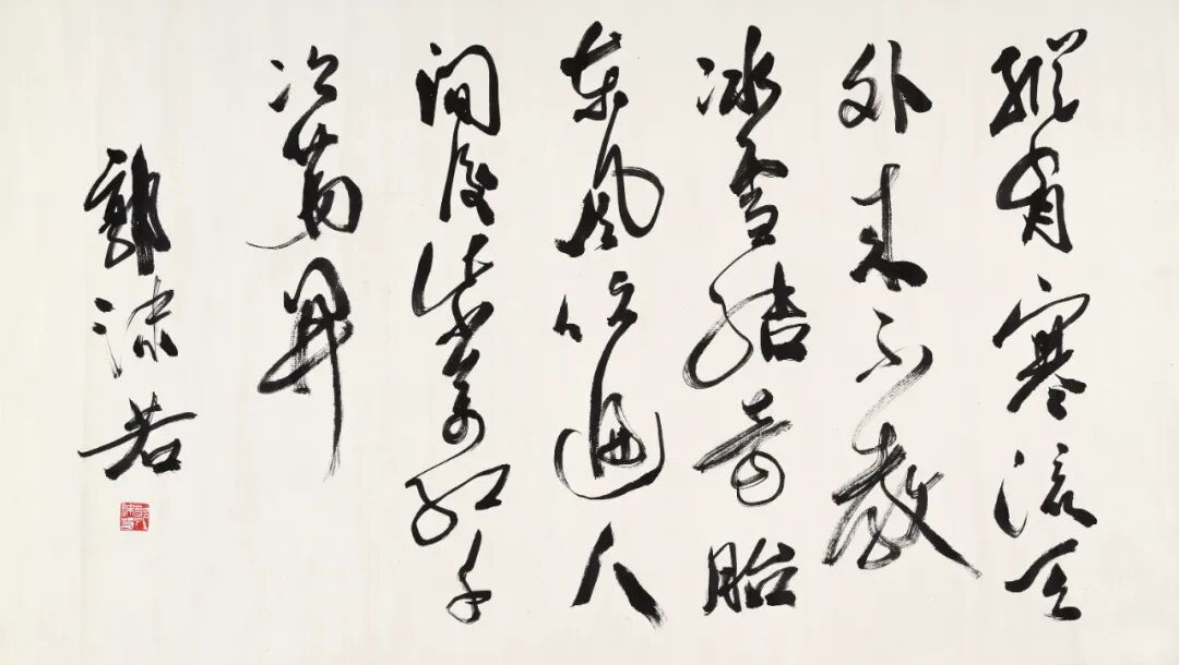 【题识】梦觉疑连榻,舟行忽千里。不见黄鹤楼,寒沙雪相似。唐刘禹锡《出鄂州界怀錶臣二首》之一。一九八四年,岁次甲子秋九月上浣,彭城李可染书于天海楼。