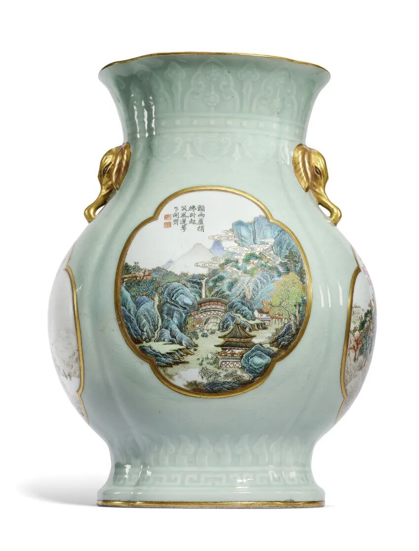 清乾隆御制诗洋彩冬青地