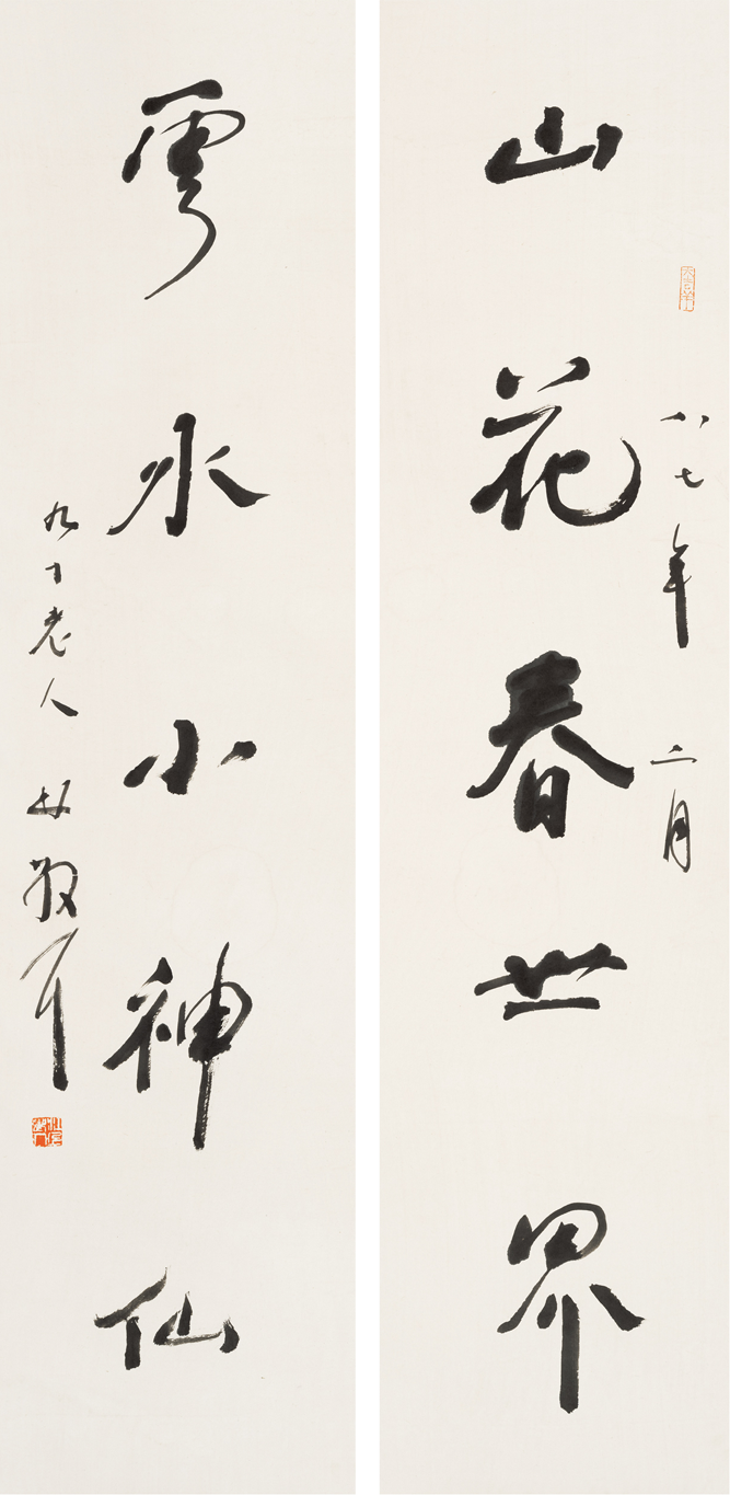 这件1982年2月由林散之书写的富有现代感的五言联,一点不逊色唐宋诗词的境界和味道。