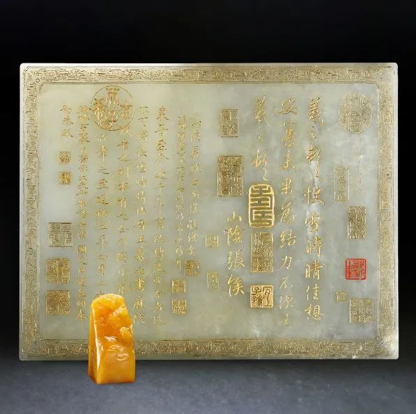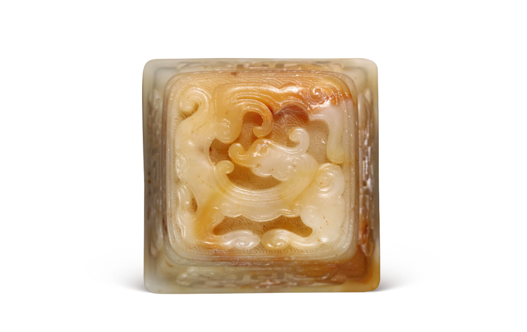 紫禁城不仅是帝后的起居之所、朝政重地,同时还是一座巨大的艺术典藏的宝库。尤其是其中所藏中国历代书画作品以及古籍文献之精,远远高出民间收藏。这些书画和古籍文献有的是直接从前朝内府收藏中承继过来的,有的是自民间征集而来,有的是当时臣工的创作,还有的则是皇帝的御笔。历朝历代的皇帝们在研习鉴赏书画之余,常常要在其上钤盖收藏印记,累朝叠加,有的作品上的鉴藏印可多达几十方甚至上百方,这也成为宫藏书画和文献的一大特点。与之相应,清代皇帝宝玺中亦可见大量鉴藏玺印。通过这些鉴藏玺,我们可以了解清宫收藏尤其是书画及古籍文献的著录流传情况。因此清帝的这些鉴藏玺也就成为我们鉴别清宫书画和典籍文物的重要依据。此方田黄云龙钮“几暇鉴赏之玺”即是乾隆皇帝重要的鉴藏宝玺之一。
