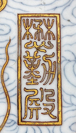 清嘉庆御制青花矾红描金苍龙教子纹“懋勤殿”玺印盒