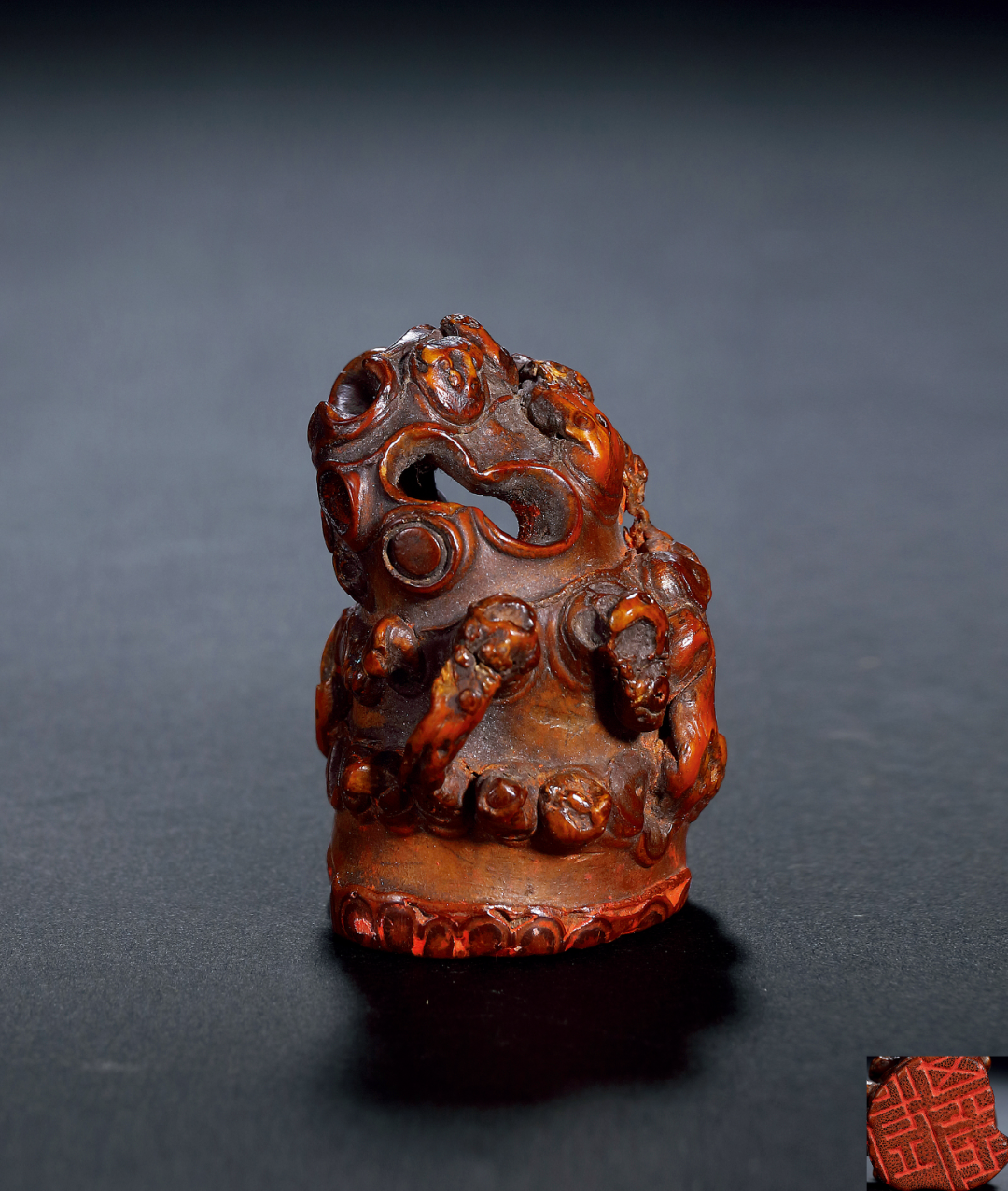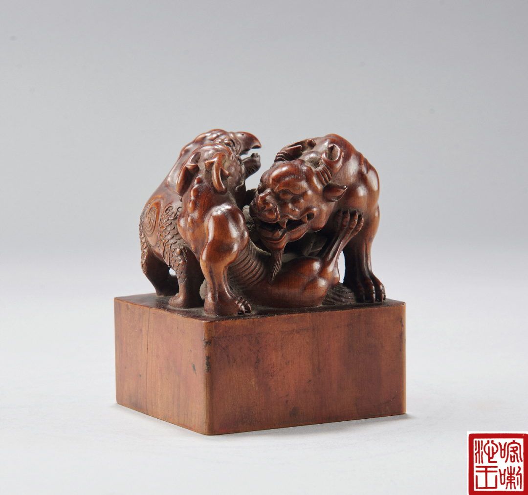 清 黄杨木雕异兽钮“喀喇沁王”方章
