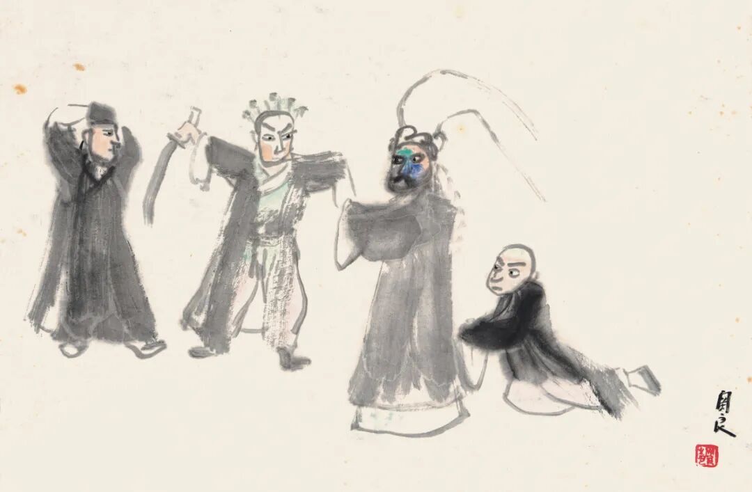 关良 打鼓戏剧人物