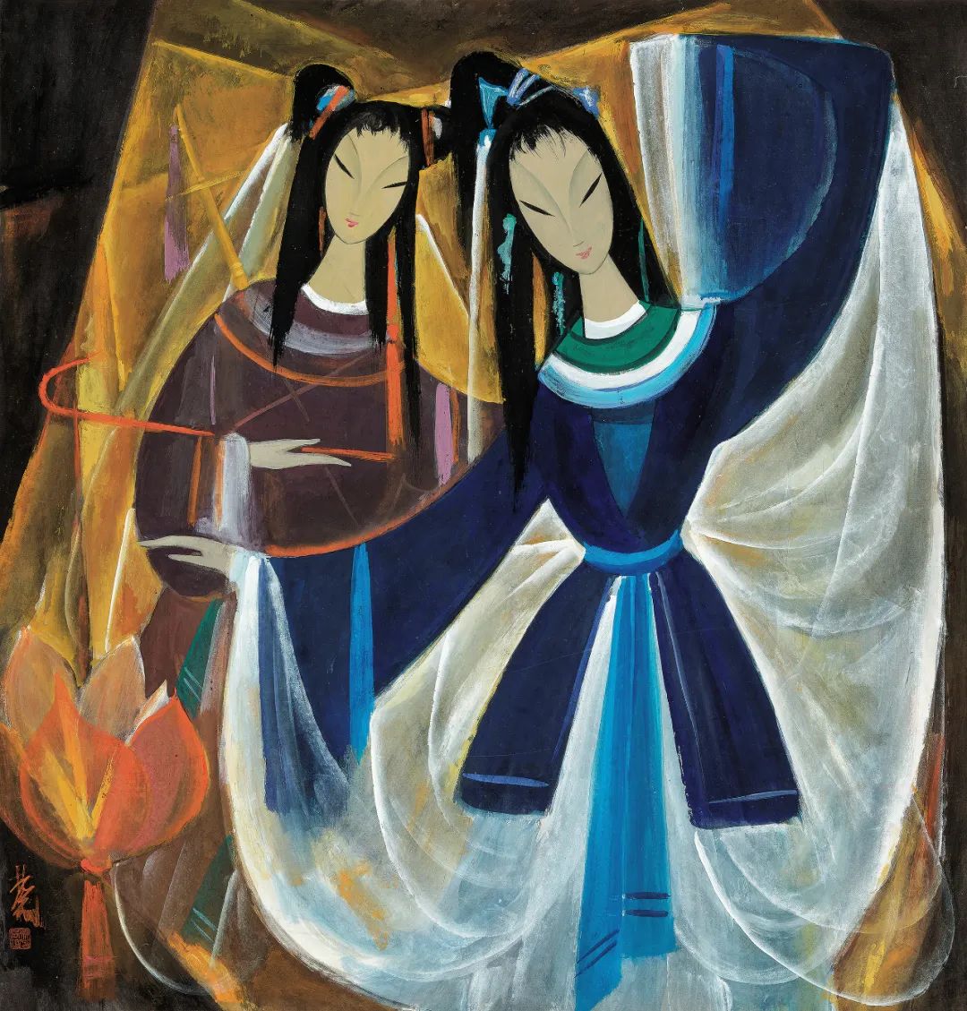 估价:RMB 2,000,000-3,000,000【说明】巴黎私人旧藏,原藏家1960-1970年代得自画家本人。《宝莲灯》中直线与曲线交错分割的几何形体,为不同时间片段的动作组合,以压平的空间体现出时间的连续性,沉香母子与四周的黑白色调与线条间,呈现光影的闪动与色彩的对比,以中国传统表演艺术的内涵与精神,去除了平面绘画的限制,深入探索视觉艺术表现的可能性。