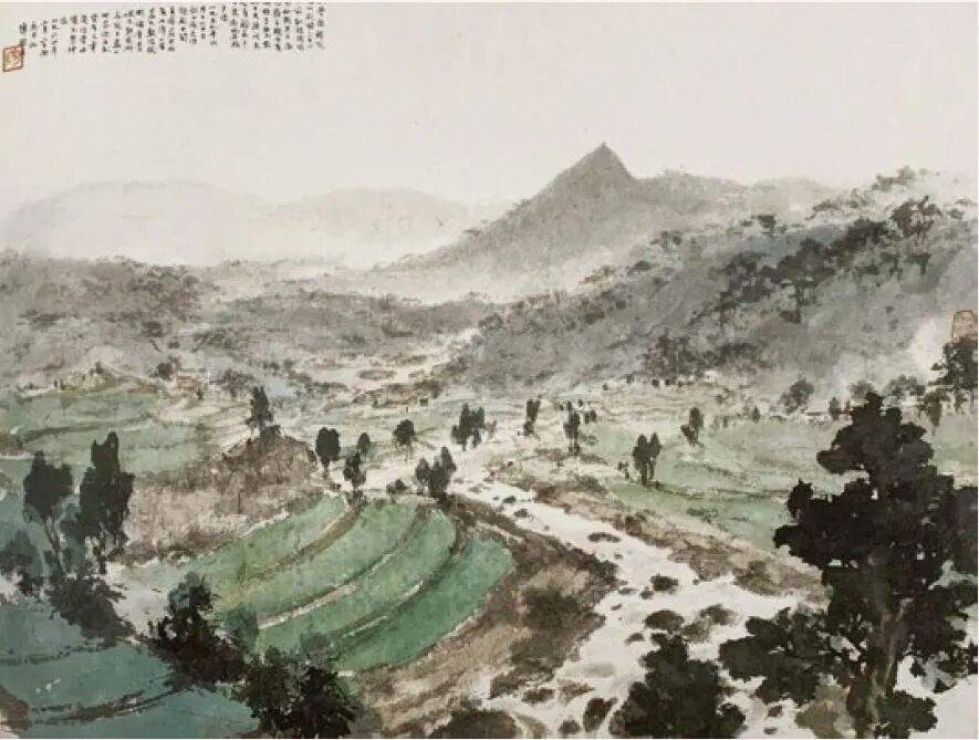 参阅 《韶山》 51.5×68cm 1965 年作 《傅抱石全集》第5 卷 第251 页