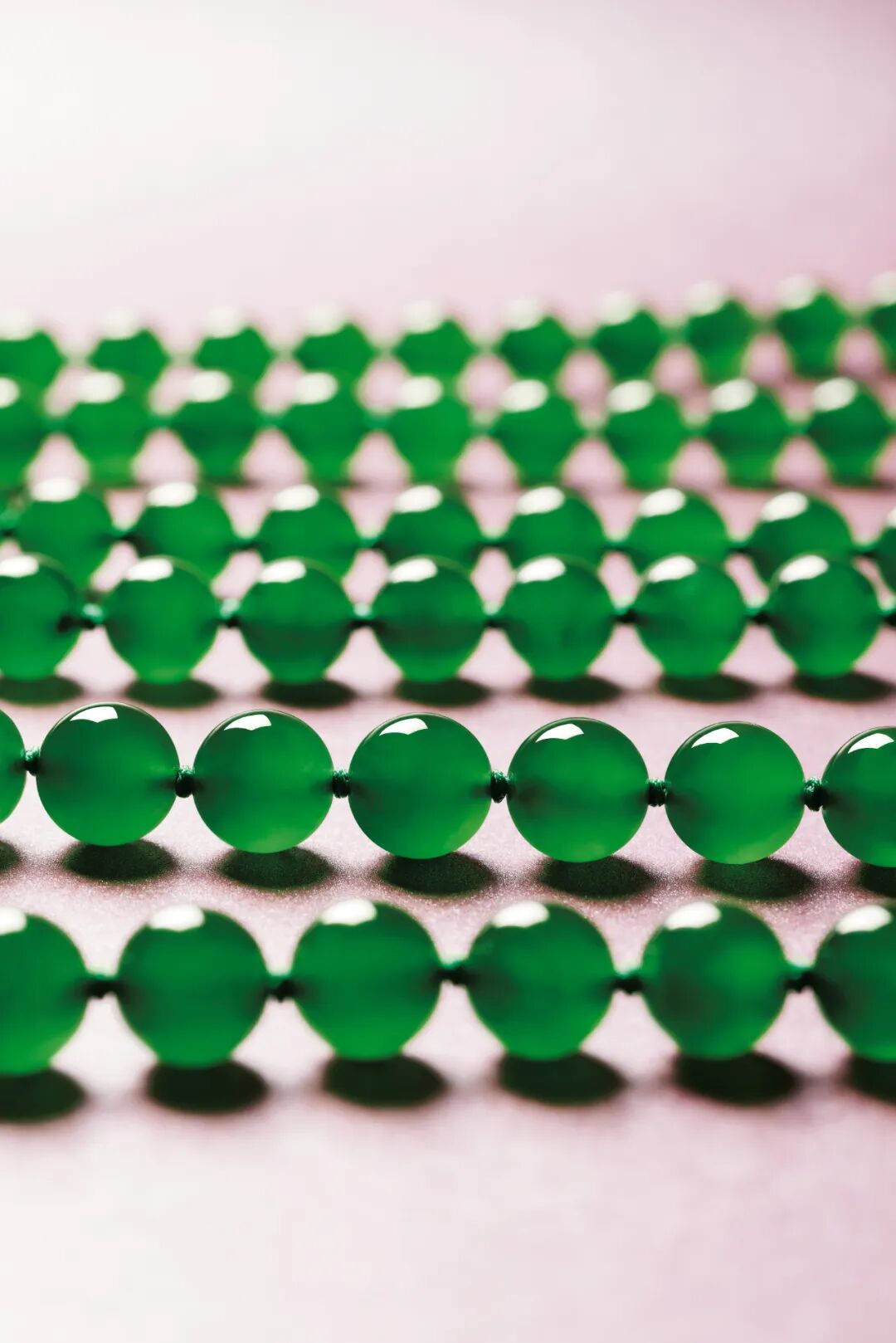 珍罕的108颗天然满绿翡翠珠配红宝石及钻石项链