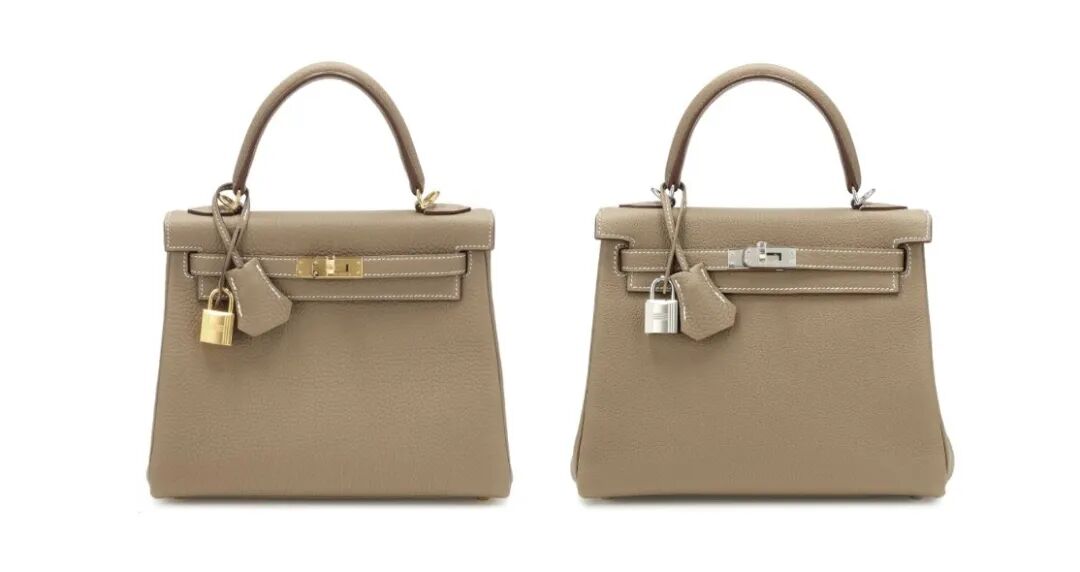 此外,原来金属件的颜色也会影响大象灰予人的观感。配暖色系的镀金金属件时,大象灰会显得温暖饱满;配冷色系的配镀钯金属件时,就显得更冷冽沉实。