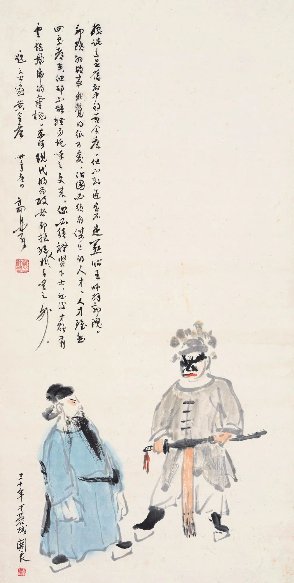 “人物画”这个曾主宰汉唐画坛,至元代渐趋衰落的门类,在20世纪中国画坛由传统向现代转型的历程中,围绕着“东方与西方”、“传统与现代”这两大命题而重放异彩。