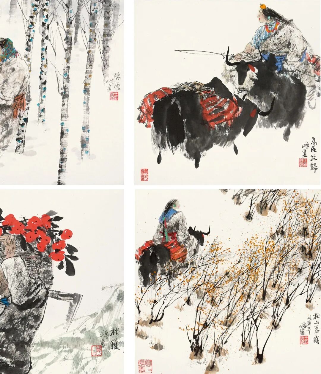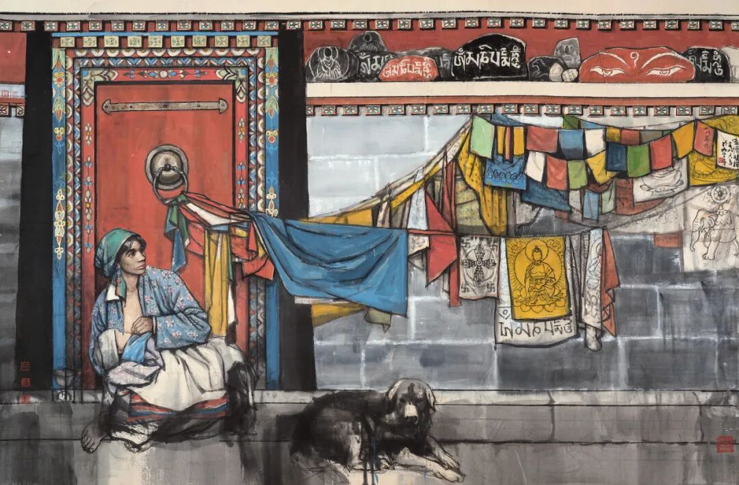 史国良与王明明作为当代水墨中坚力量,在现实主义人物画取材上与黄胄一脉相承,后者着重于歌颂新西藏的新面貌,表达画家朴素的阶级和民族情感;前者则多通过少数民族题材思考人与自然的关系,追问生命存在的终极价值和意义,表达画家形而上的超越情怀。采用的是“徐蒋体系”的写实手法,但同时更追求写意性的表现,使作品笼罩了一种诗意而神秘的美感。