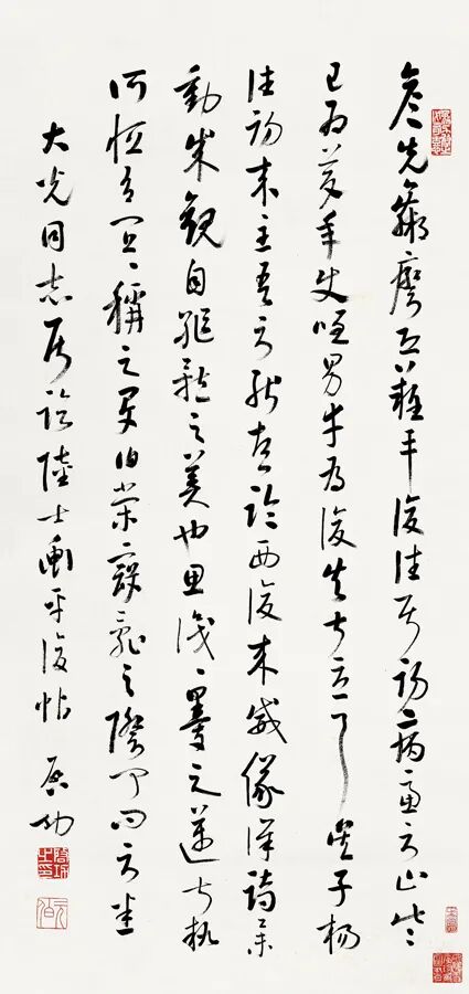 上款国强同志,即为原中国画研究院著名摄影师娄国强。娄与启功先生多有交往,且情谊甚笃,故所藏启功书画多精品。