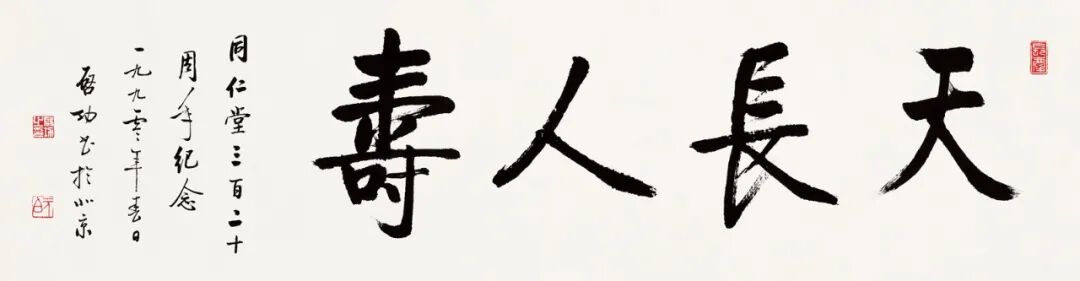 题识∶同仁堂三百二十周年纪念。一九九零年春日,启功写于北京。
