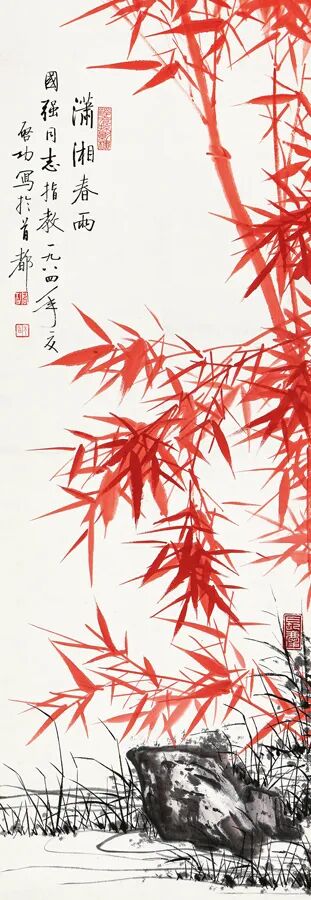 题识∶潇湘春雨。国强同志指教。一九八四年夏,启功写于首都。