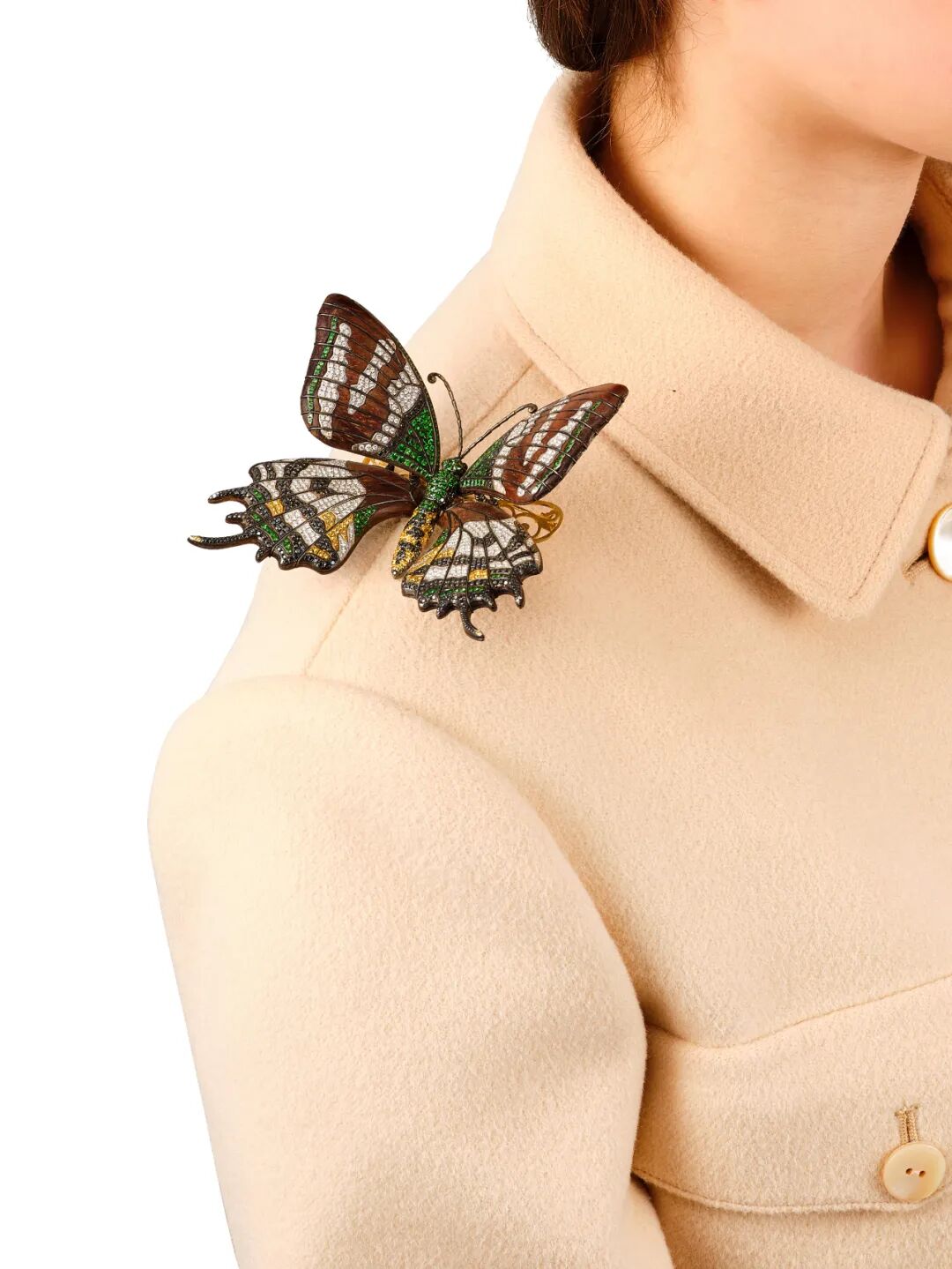 翁狄森 | 限量版「金斑喙凤蝶」硬木配钻石及宝石胸针及「一针一线慈善基金」刺绣中山装一套