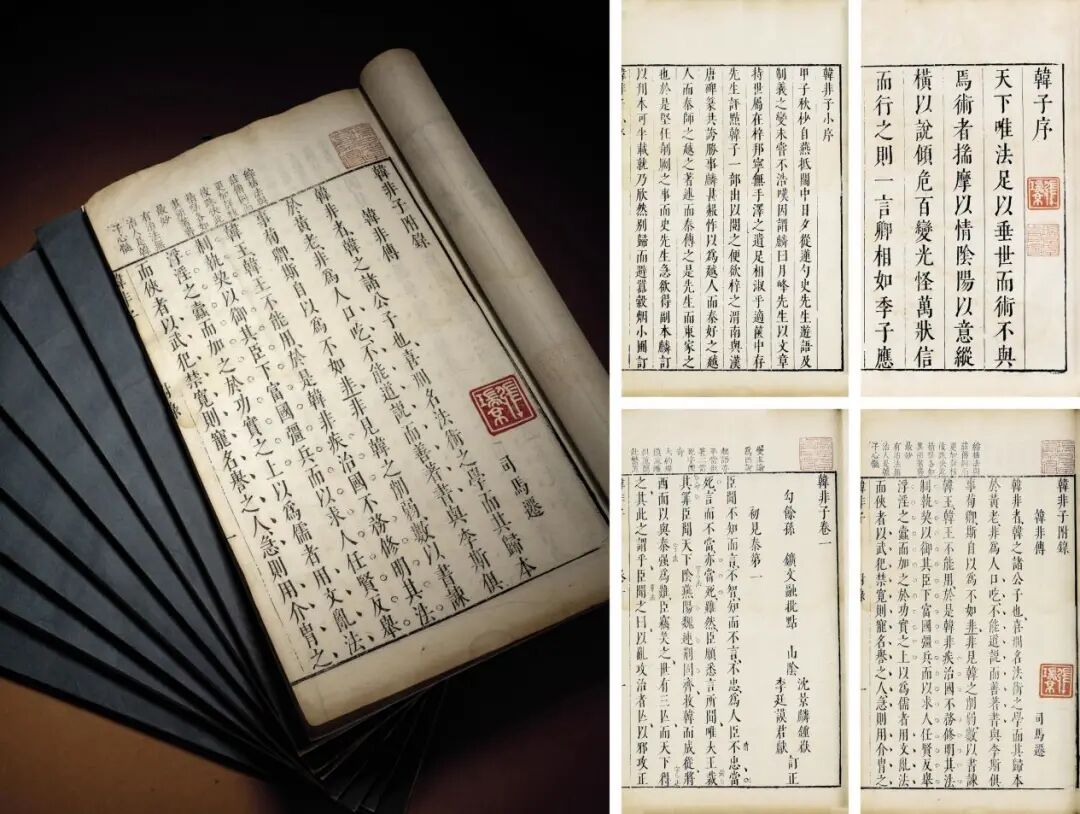 提要:是书共二十卷,半页九行行二十字,无行格,白口四周单边。据《汉书·艺文志》著录《韩非子》五十五篇,《隋书·经籍志》著录二十卷,张守节《史记正义》引阮孝绪《七录》(或以为刘向《七录》)也说“《韩非子》二十卷。”篇数、卷数皆与今本相符,可见今本并无残缺。该书是法家学派的代表著作,由五十五篇独立的论文集辑而成,里面的典故大都出自韩非,除个别文章外,篇名均表示该文主旨。韩非学说的核心是以君主专制为基础的法、术、势结合思想,秉持进化论的历史观,认为人与人之间主要是利害关系而仁爱教化辅之,强调以法治国,以利用人,对秦汉以后中国封建社会制度的建立产生了重大影响。该书在先秦诸子中具有独特的风格,思想犀利,文字峭刻,逻辑严密,善用寓言,其寓言经整理之后又辑为各种寓言集,如《内外储说》、《说林》、《喻老》等。