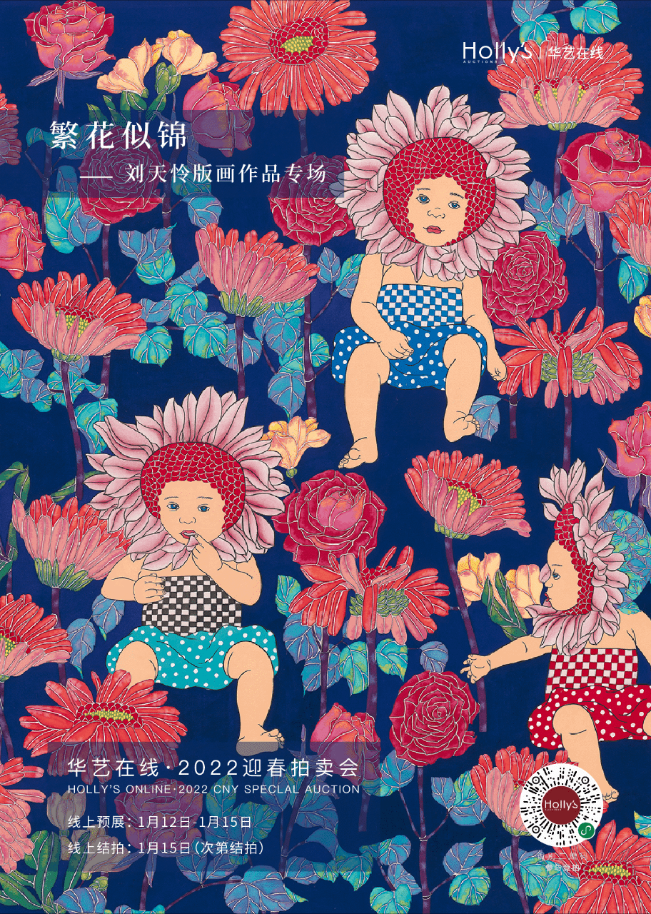 本次迎新拍,“繁花似锦——刘天怜版画作品专场”选择刘天怜精美版画作品10件,以飨艺术爱好者。在这些作品中,艺术家尝试用其特有的工笔技艺,浓重而又鲜明的色彩、装饰性的叠层平涂,以及几何化的抽象和拼贴等当代手法,将传统工笔画中花鸟虫鱼等具有美好寓意的事物,以崭新的意象和陌生的视觉效果呈现,即传达了传统文化中美好愿望,也将工笔绘画的雍容华贵表现的淋漓尽致。在新春佳节之际,无论居家悬挂或者馈赠佳友,都是非常适合的选择。