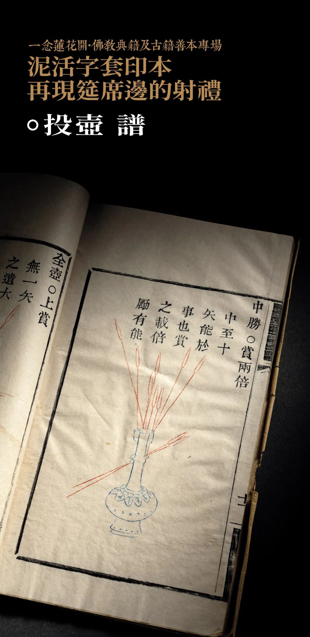 2021秋北京荣宝拍卖中《投壶谱》一卷,李瑶撰,为清道光九年(1829)泥活字本,投壶版画部分三色套印,此书运用多种印刷技术,是我国版本印刷史上的珍贵文物,随着清代晚期政治动荡,投壶这门古老的中国宴乐游戏在贯穿两千多年后戛然而止,相关文物大多湮没不存,此册拍场仅见文献无疑对研究古代游艺史、礼乐史、青铜工艺史、版本史等等方面,具有重要的综合参考价值。