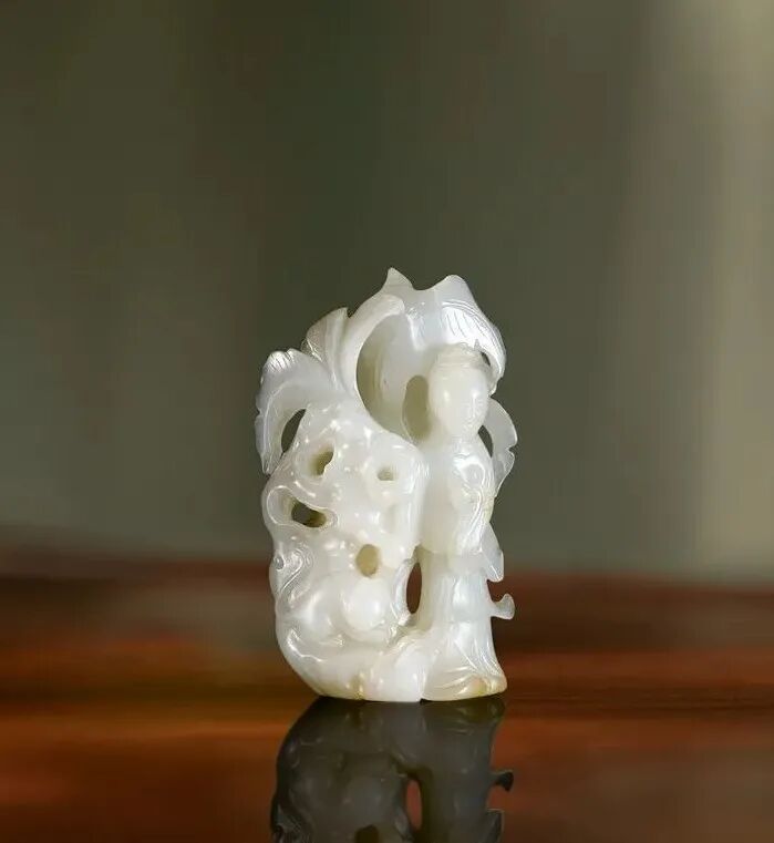 明·青白玉雕天保九如款如意螭龙纹瓶