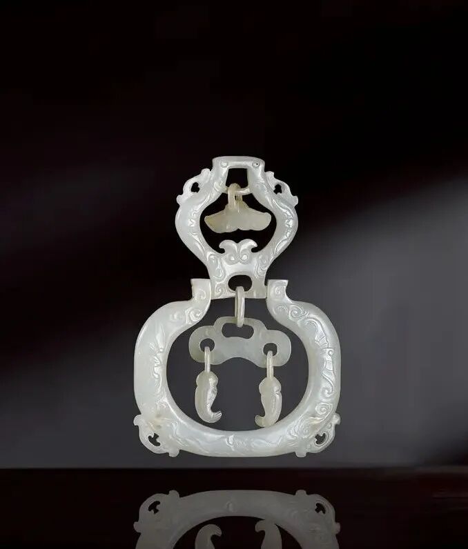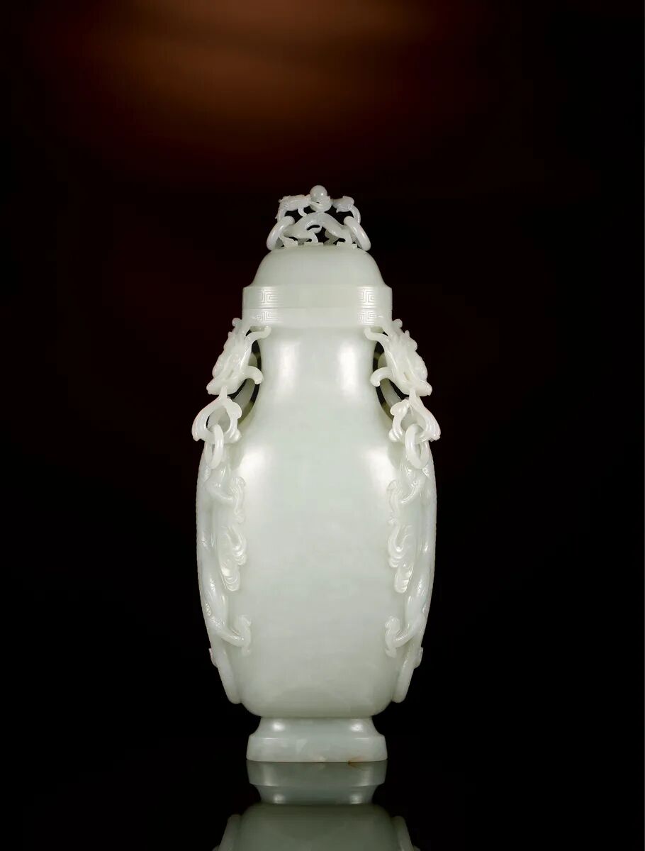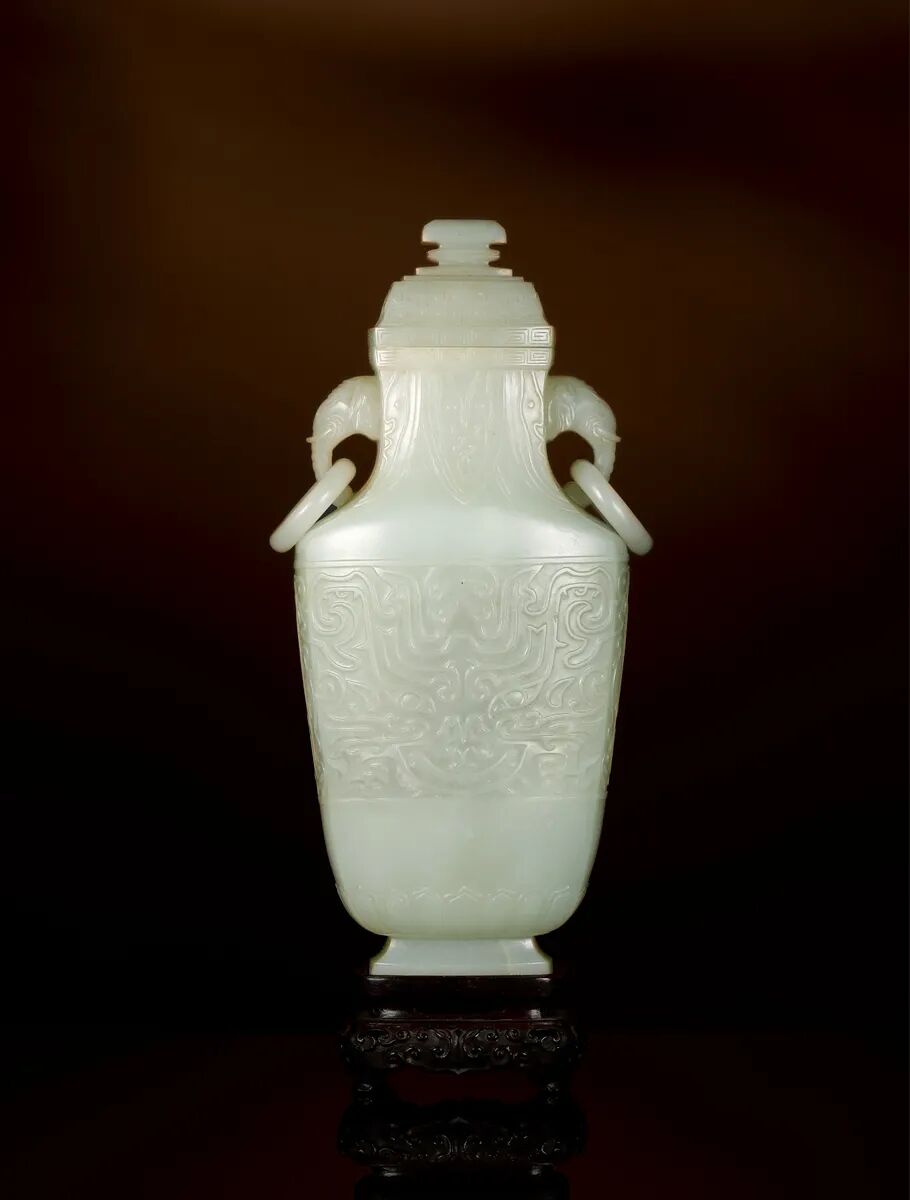 清乾隆·白玉雕饕餮纹象耳活环盖瓶