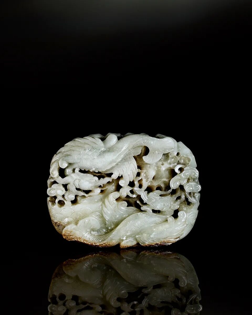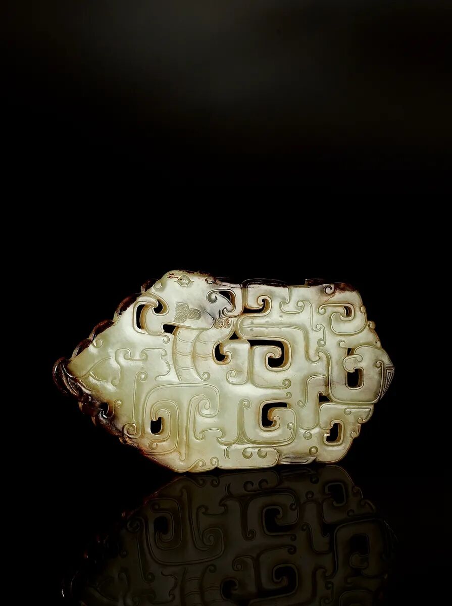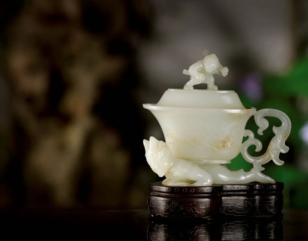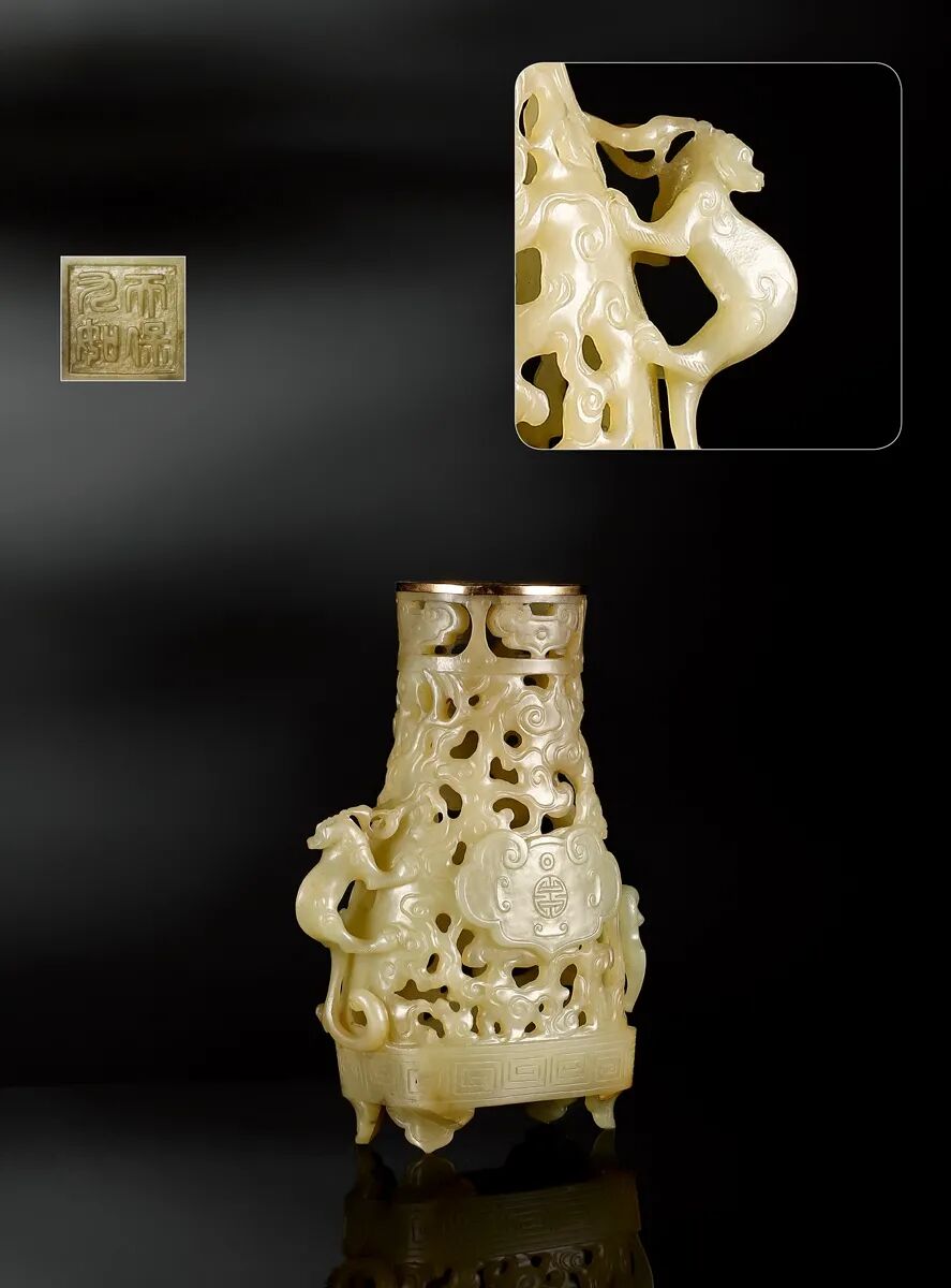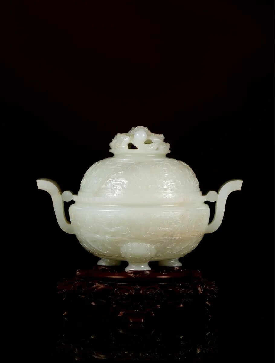 清乾隆·白玉雕朝冠耳龙钮兽面纹三足炉