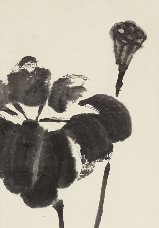 齐白石早期画的荷花,偏于墨色,设色极少,构图每每十分简单。是幅《荷塘游虾图》是一幅纯水墨作品,用笔简练,构图舒朗,略有八大山人笔意。作品左下方两只墨虾轻盈纤细,与墨荷的粗壮浓厚形成鲜明对比,两只虾仅寥寥几笔,用墨色的深浅浓淡来表现虾的动感。整幅作品布局疏密结合,实可谓天机自成。1921年,齐白石在一幅《荷花》上题句到:“大涤子尝云:此道有彼时不合众意而后世鉴赏不已者,有现时轰雷震时而后世不闻问者。余此幅当时不合众意,后世不欲人闻问,人奈我何。”足见当时的齐白石在北京卖画正受冷遇,知音稀少,才有此愤世嫉俗之语。此时的齐白石因为画风受八大山人影响,冷逸一路,人多不识。直至上世纪20年代末,齐白石的画风开始发生变革,逐渐有了自己个人的面目。