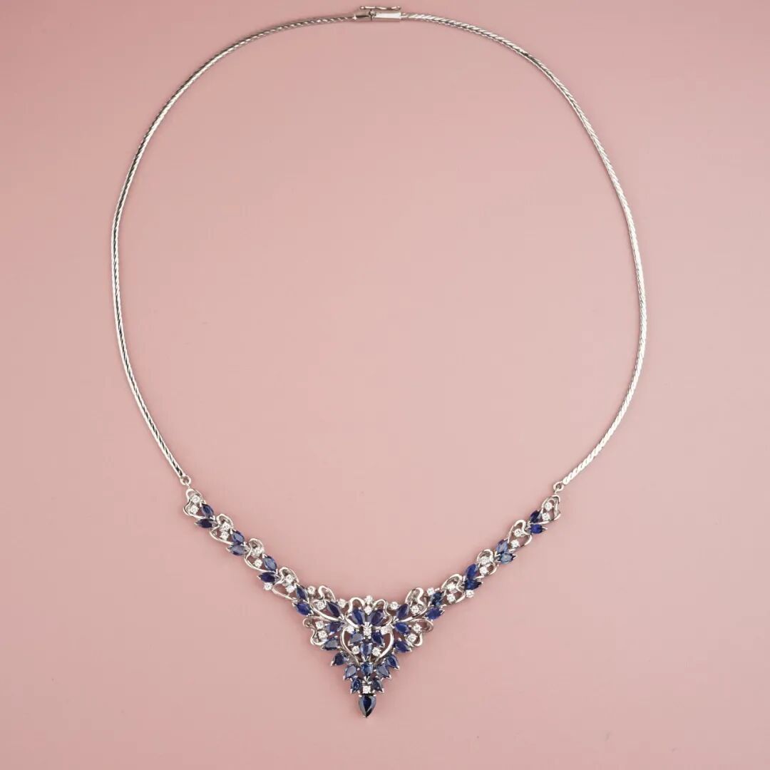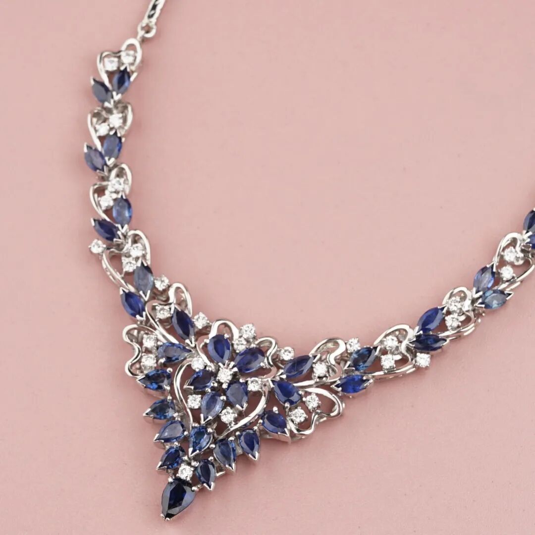 天然蓝宝石配钻石项链(蓝宝石共重约5.7克拉)