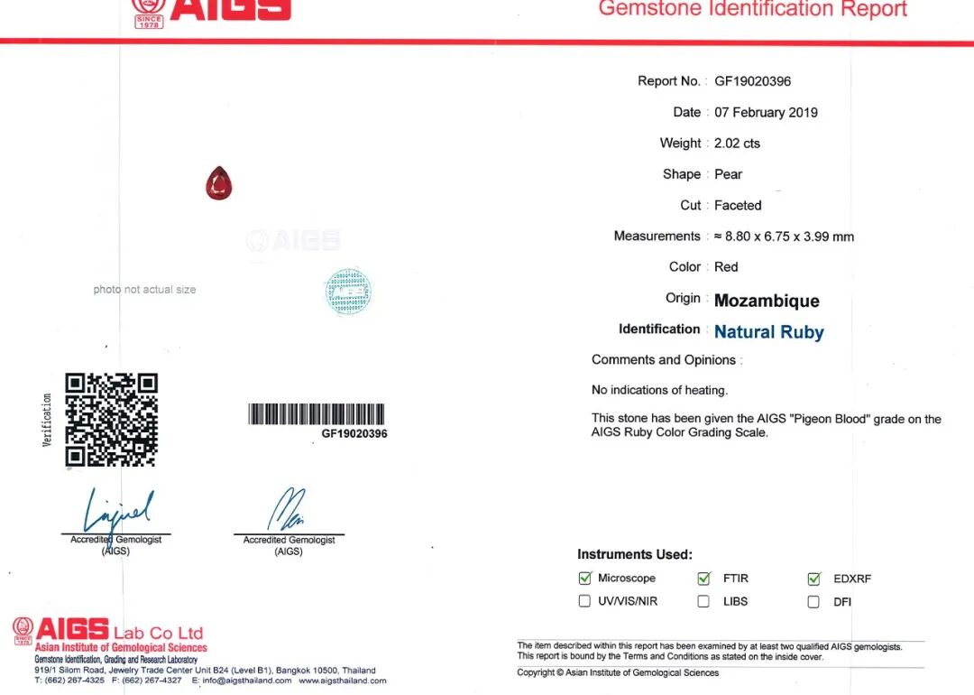 2.02克拉「莫桑比克」「鸽血红」红宝石配钻石戒指/吊坠,未经加热