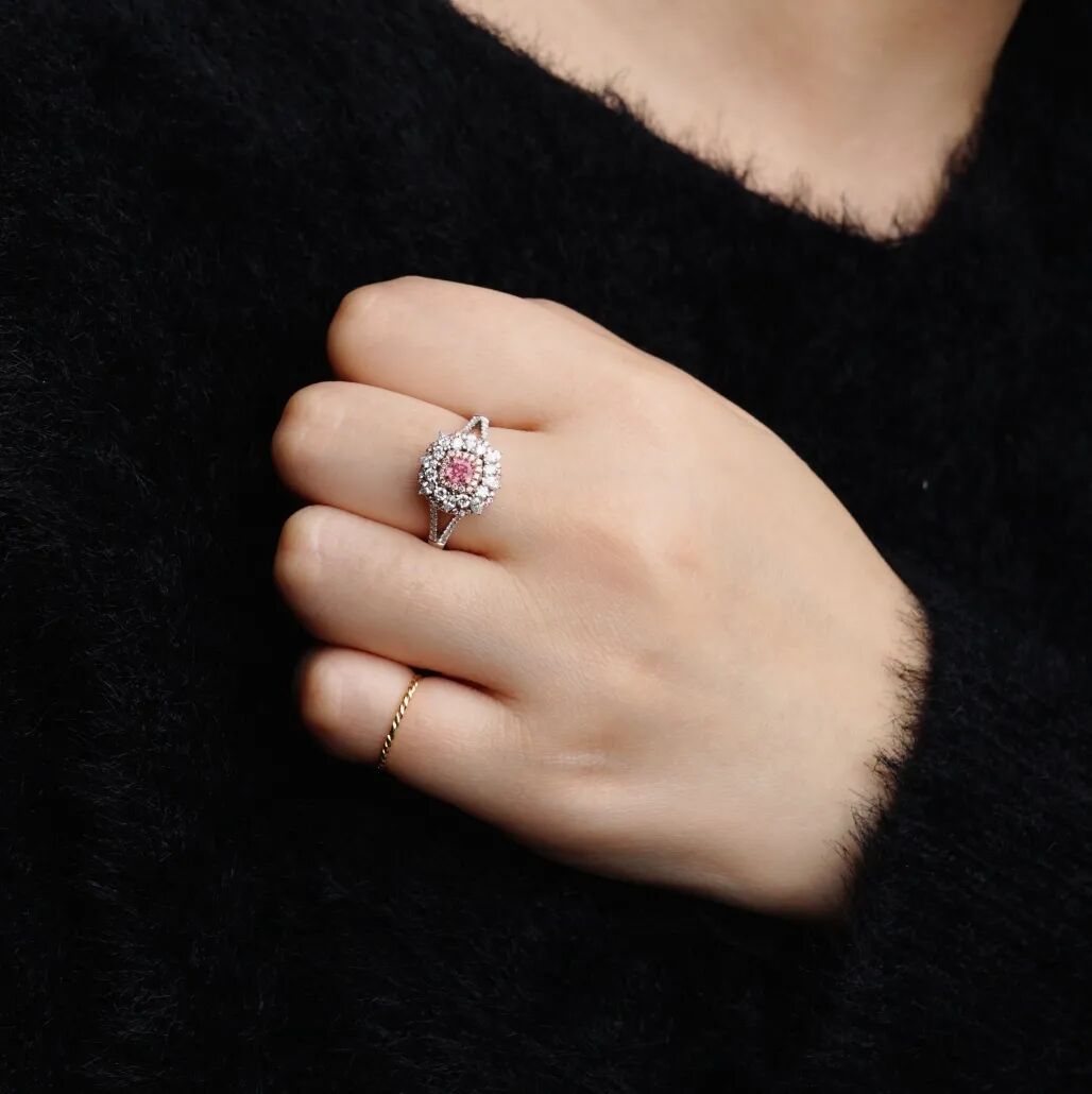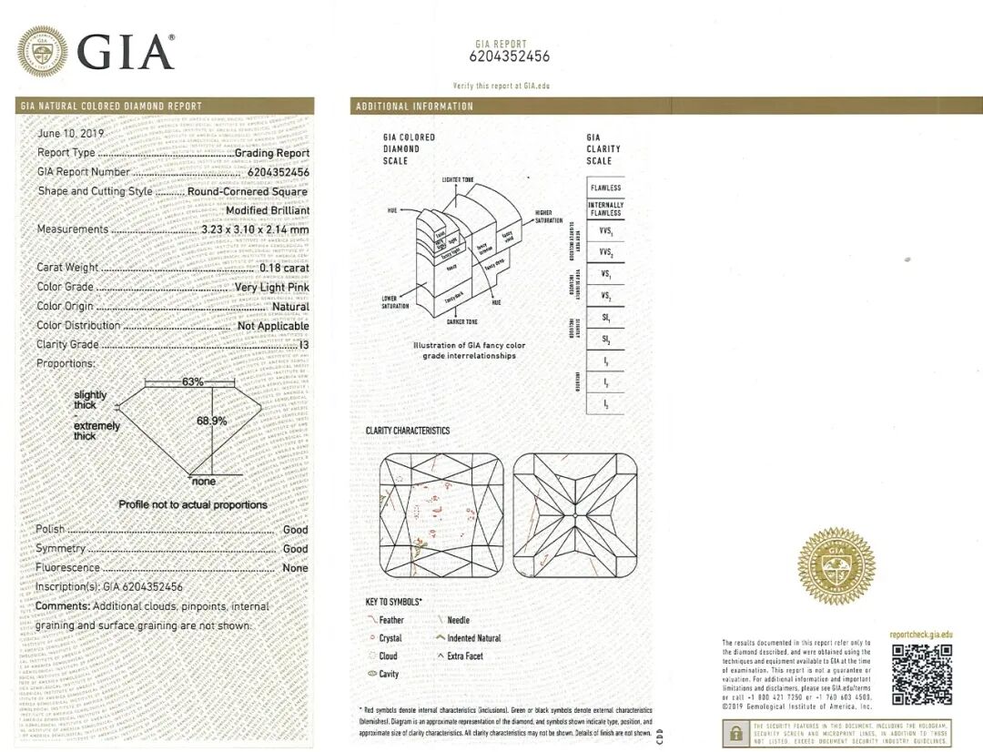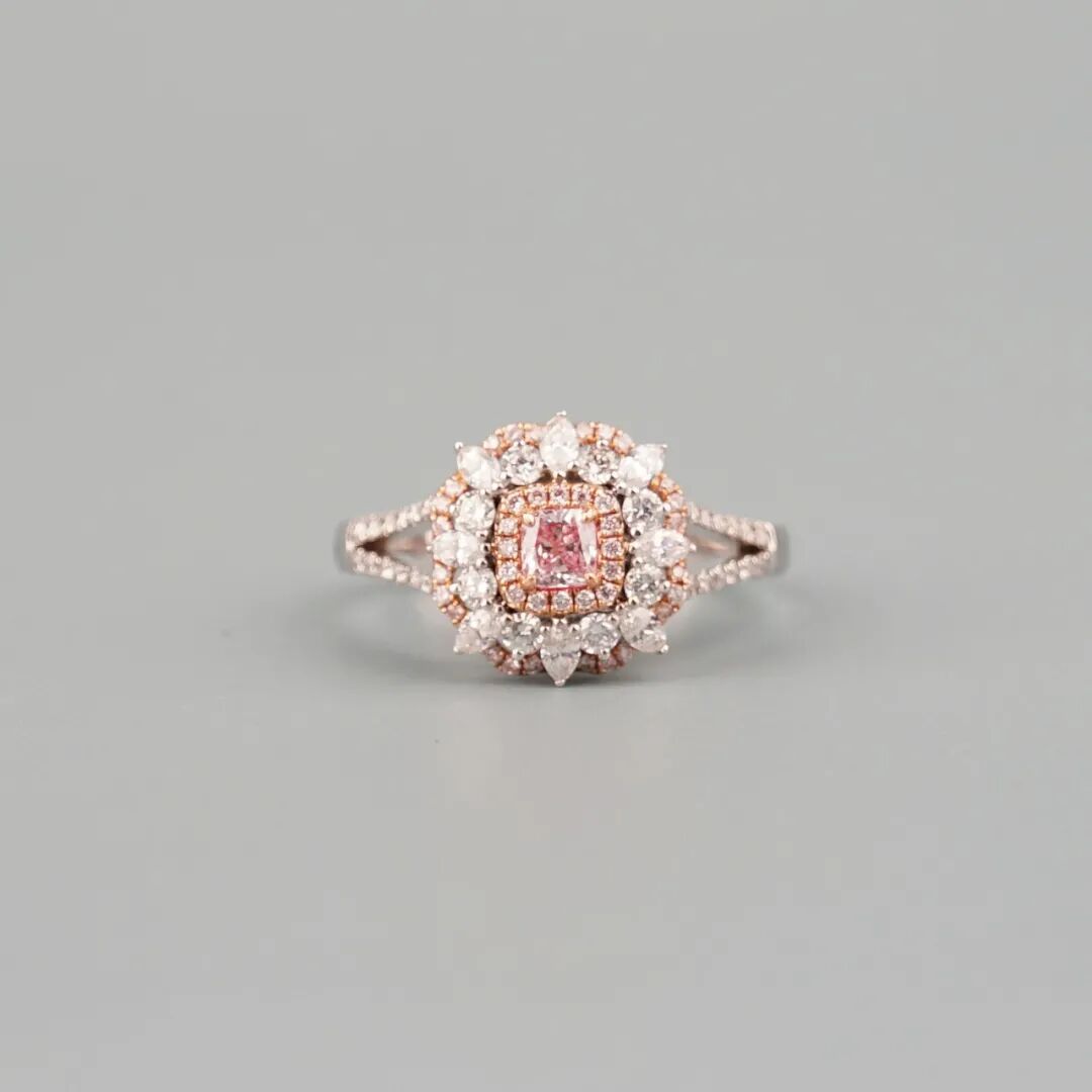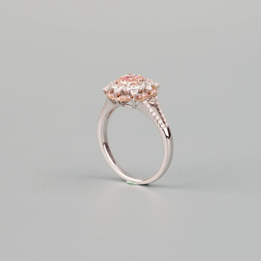 18K白金镶嵌浅粉色钻石,0.18克拉(Very Light Pink),配镶钻石共重约0.746克拉。