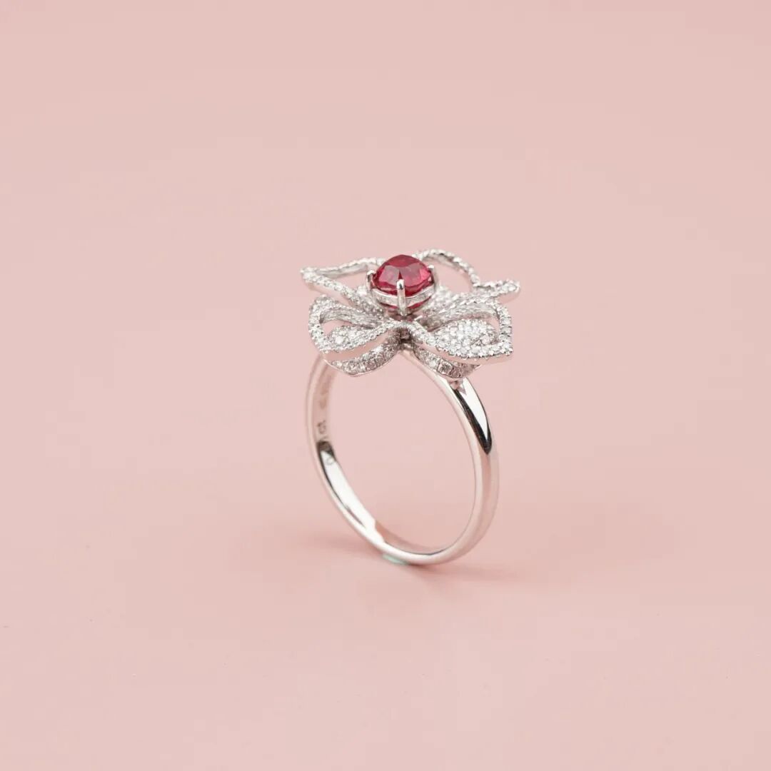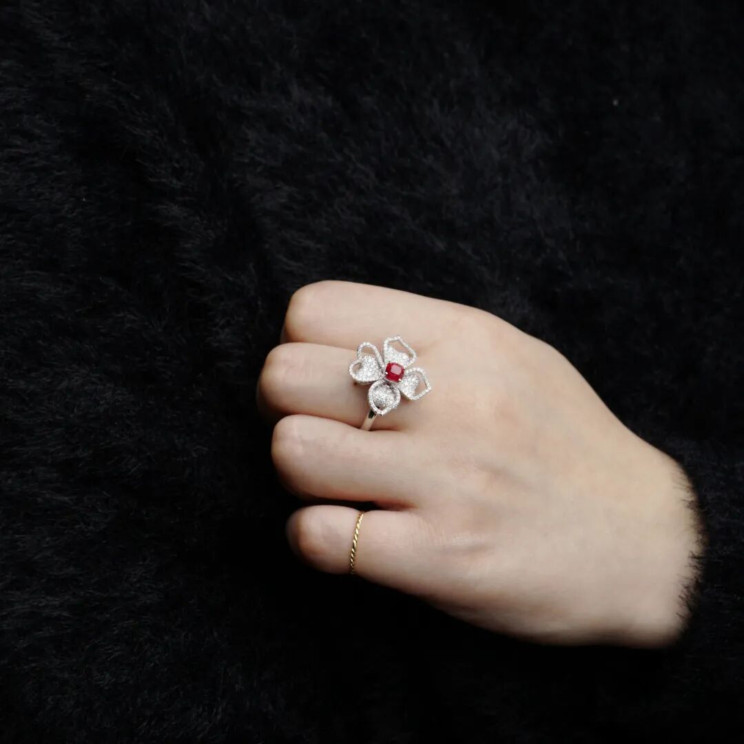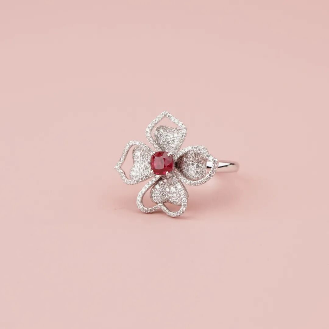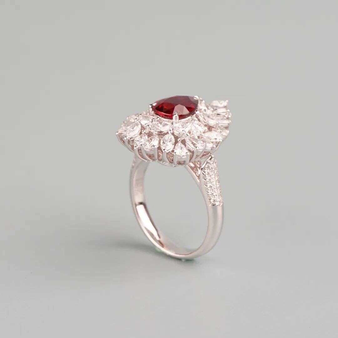 18K白金镶嵌天然红宝石戒指/吊坠,红宝石共重约2.02克拉,产地莫桑比克,颜色为鸽血红,未经热处理,配镶水滴型及梨形钻石共重约2.37克拉。